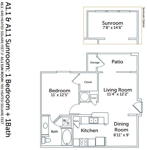 Apartment Model: A111 Bedroom, 1 Bath, 640-760 sq ftAvailable December 29, 2025![]()
