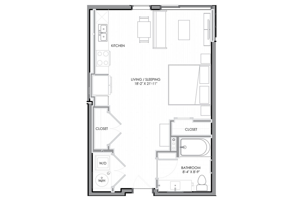 Studio, 1 Bath, 583 sq ftAvailable NowLargest StudioThis is the largest Studio at this PropertyModel Gallery