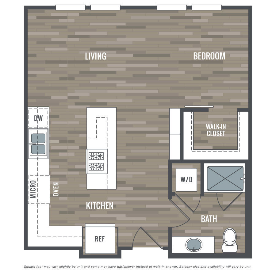 SA - Floorplan 2 Apartment Unit: 1101Apartment Model: SA$1,691Studio, 1 Bath, 517 sq ftAvailable November 9, 20251 Bedroom