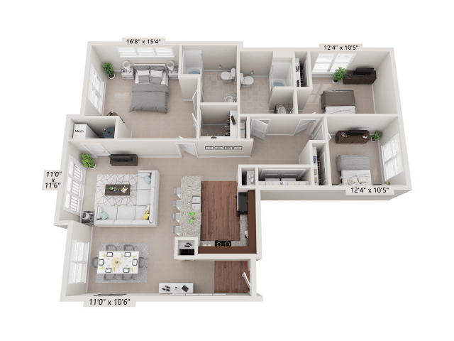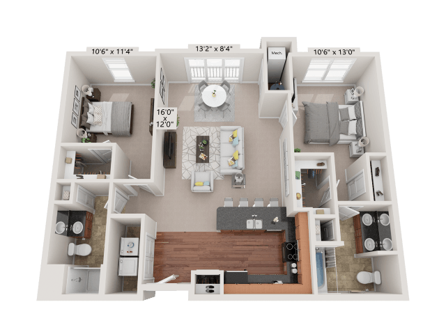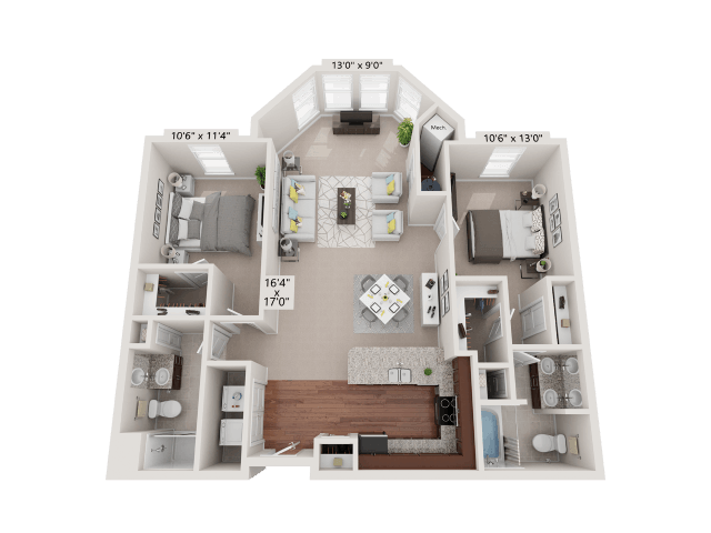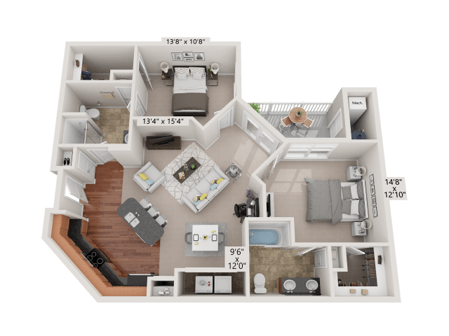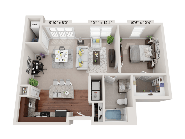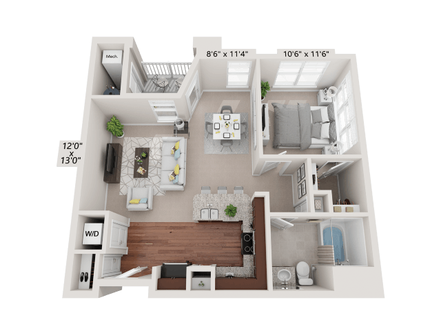 1 Bed, 1 Bath, 736 sq ftAvailable NowModel Gallery