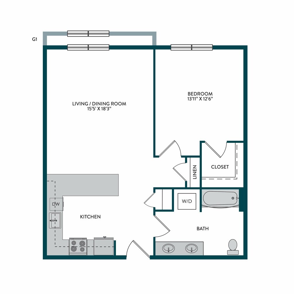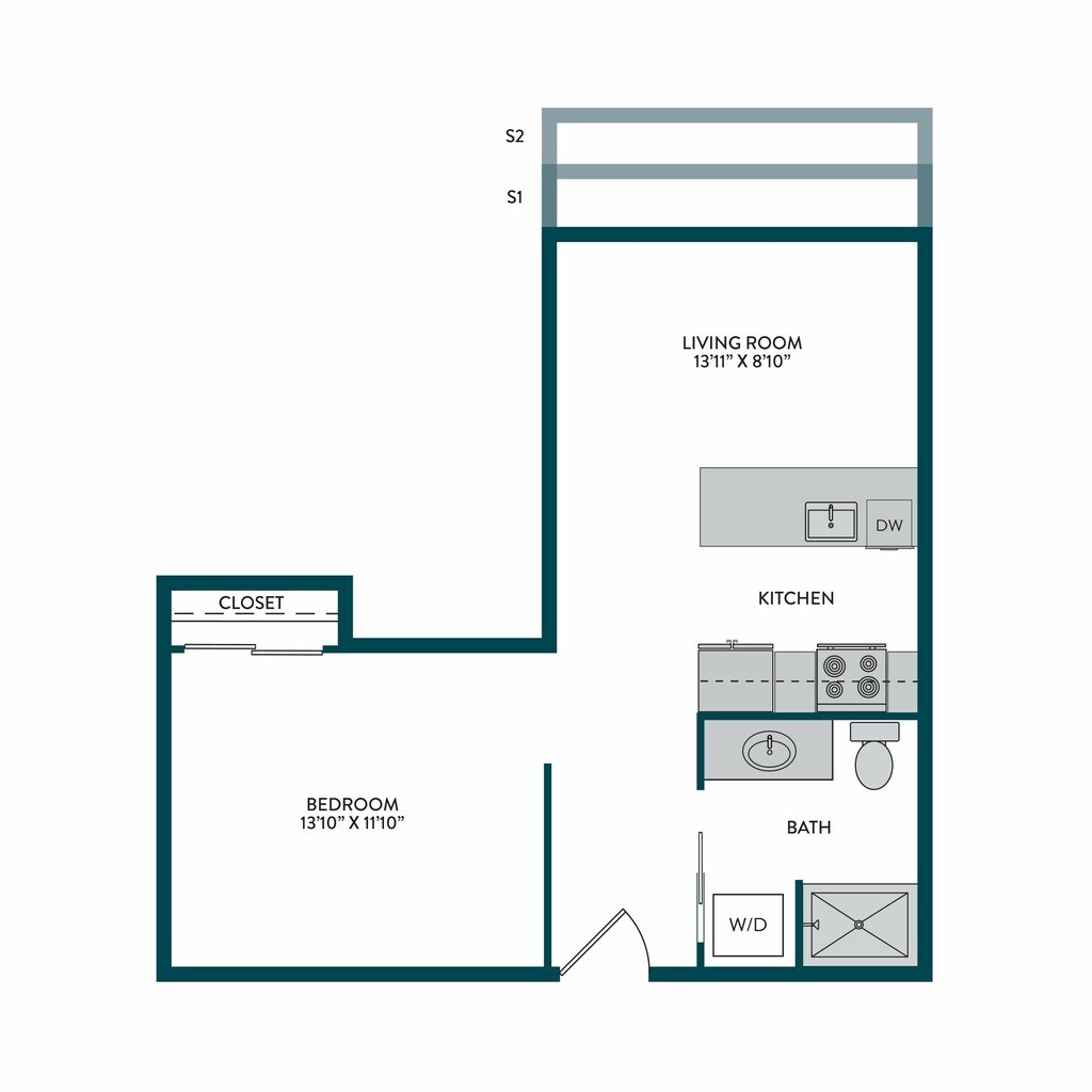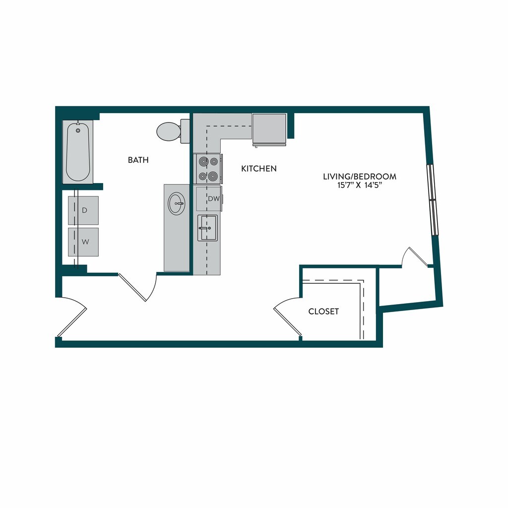 Studio, 1 Bath, 357 sq ftAvailable NowModel Gallery