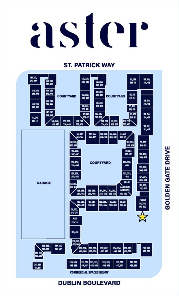 Aster Apartments - Income restricted, Modern Living in Dublin, CA Explore stylish studio, 1 & 2-bedroom apartments with upscale amenities, all in a pet-friendly community near BART, I-580 & I-680. Perfectly located close to San Ramon, Pleasanton & Livermore, Aster offers the best of Tri-Valley living. Aster provides options for high-quality apartment homes with flexible rates for middle-income individuals and families as part of our Essential Housing Program.