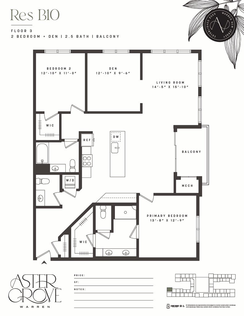 Aster Grove offers 1 to 3 Bedroom apartments starting from $2,515 and having 748–1,663 sq ft. Here is the current pricing and availability:
