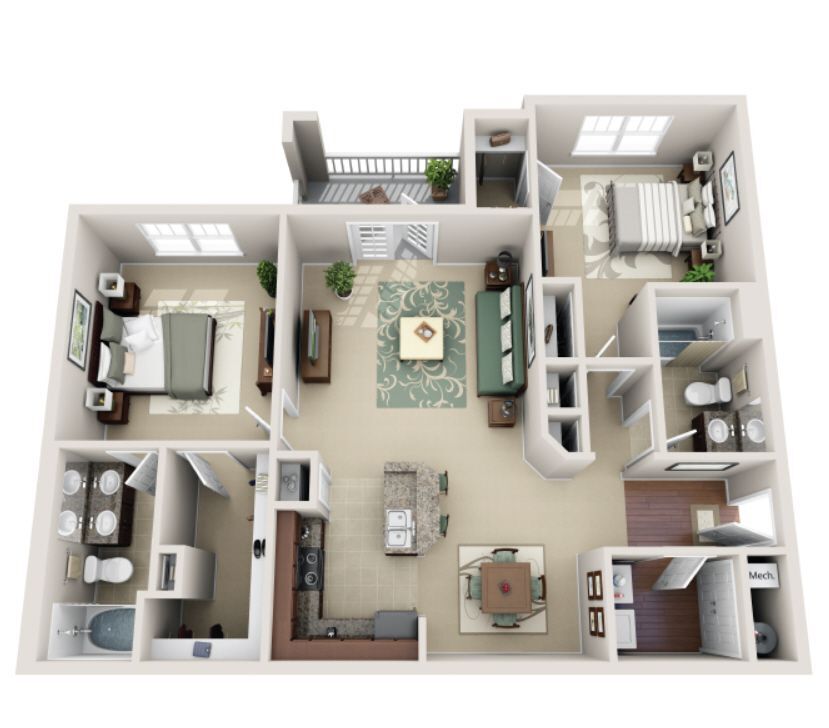 3 Beds, 2 Baths, 1308 sq ftAvailable NowModel Gallery