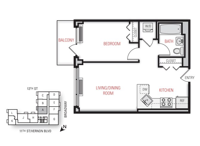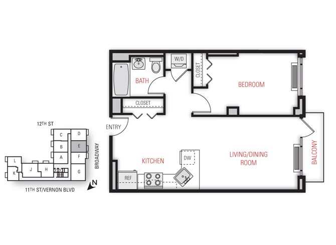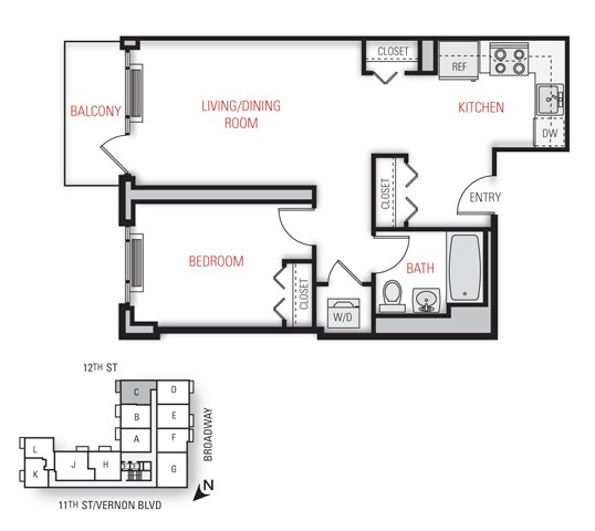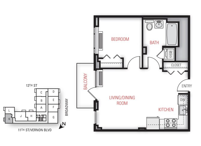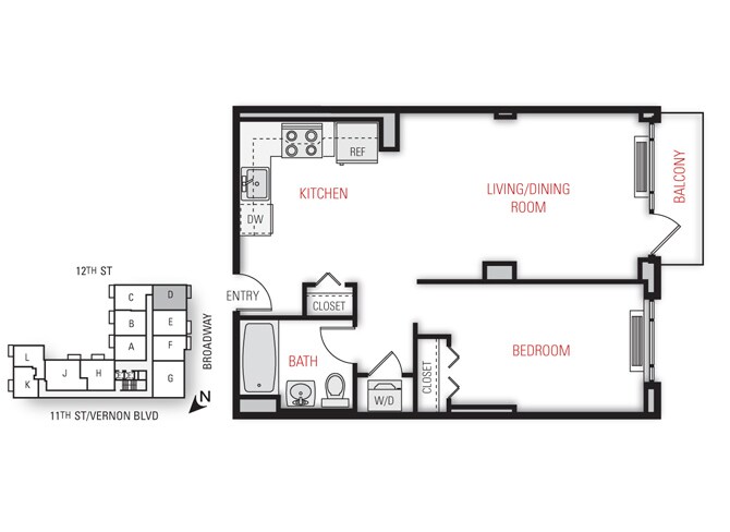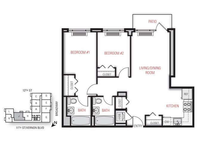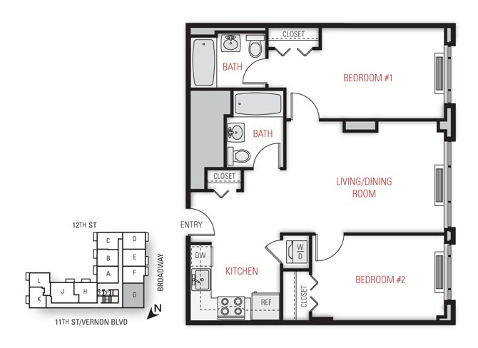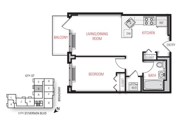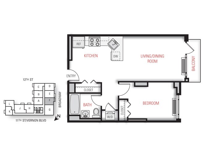 One Bedroom Floor Plan - Floorplan 11 2 Bedrooms