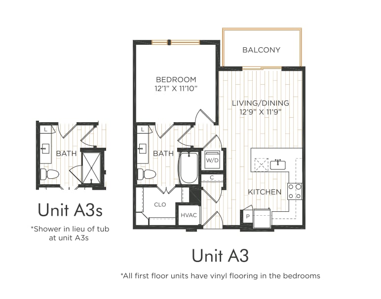 Apartment Model: A3From $1,3871 Bedroom, 1 Bath, 689 sq ftAvailable NowFloor plans are artist's rendering. All dimensions are approximate. Actual product and specifications may vary in dimension or detail. Not all features are available in every rental home. Please see a representative for details.