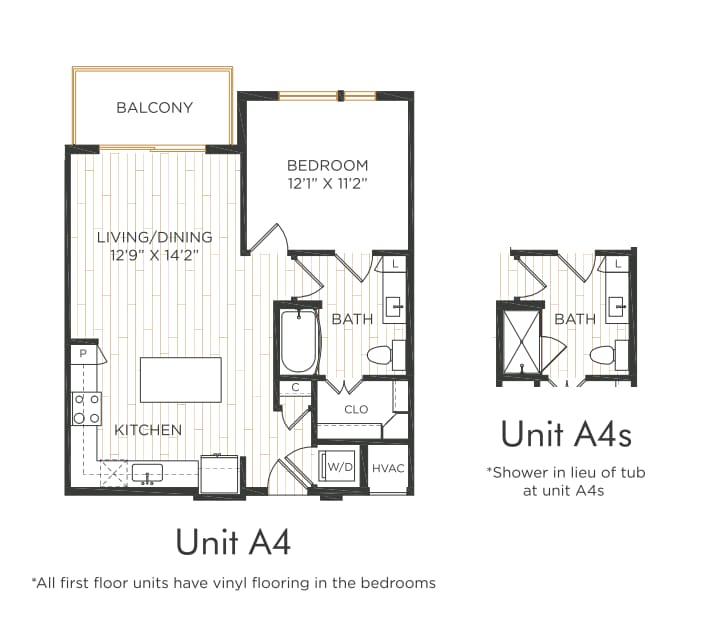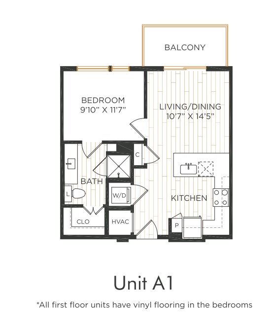 Apartment Model: A1From $1,2961 Bedroom, 1 Bath, 576 sq ftAvailable NowFloor plans are artist's rendering. All dimensions are approximate. Actual product and specifications may vary in dimension or detail. Not all features are available in every rental home. Please see a representative for details.