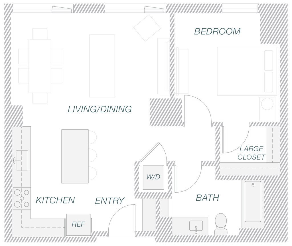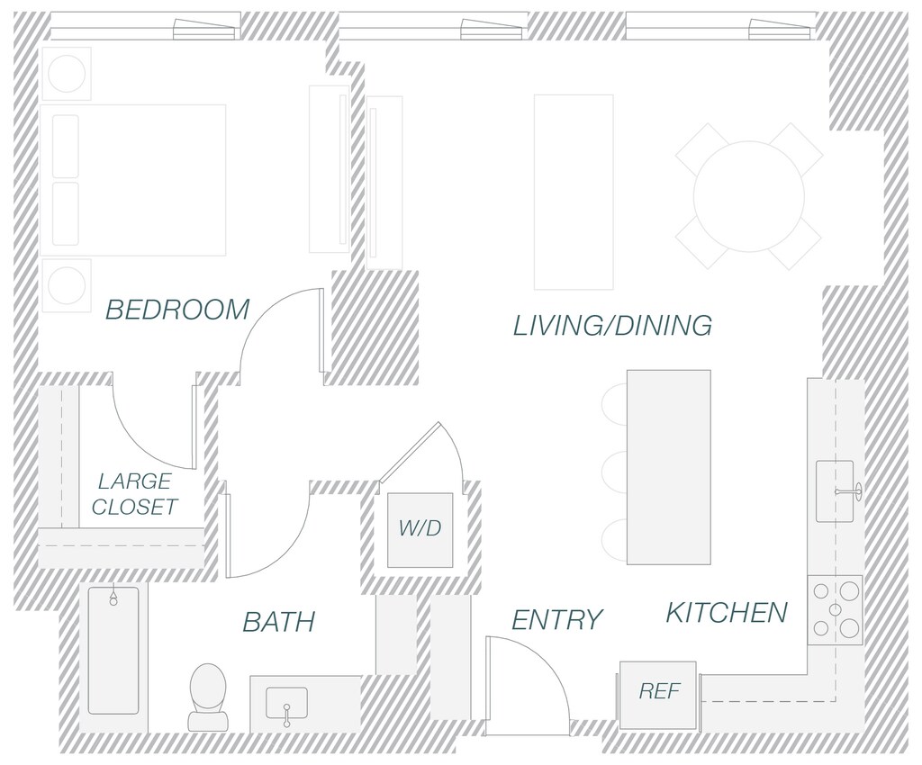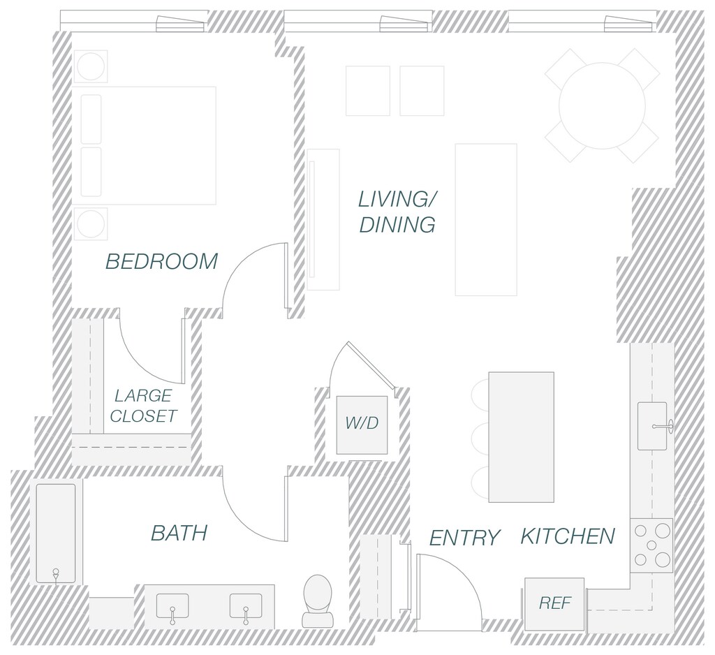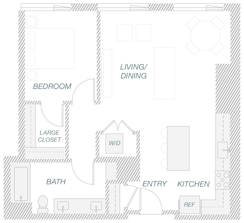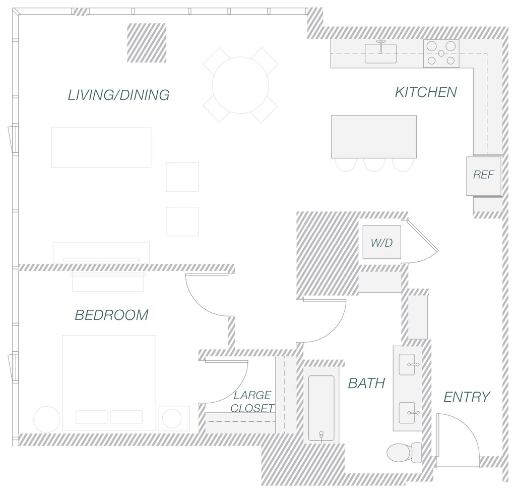 0-2A - Floorplan 1 Apartment Unit: 316Apartment Model: 0-2A$1,615Studio, 1 Bath, 472 sq ftAvailable Now0-3A