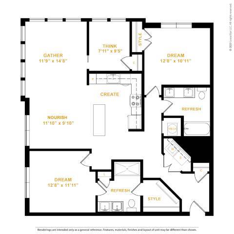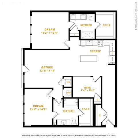 1 Bed, 1 Bath, 737 sq ftAvailable NowModel Gallery