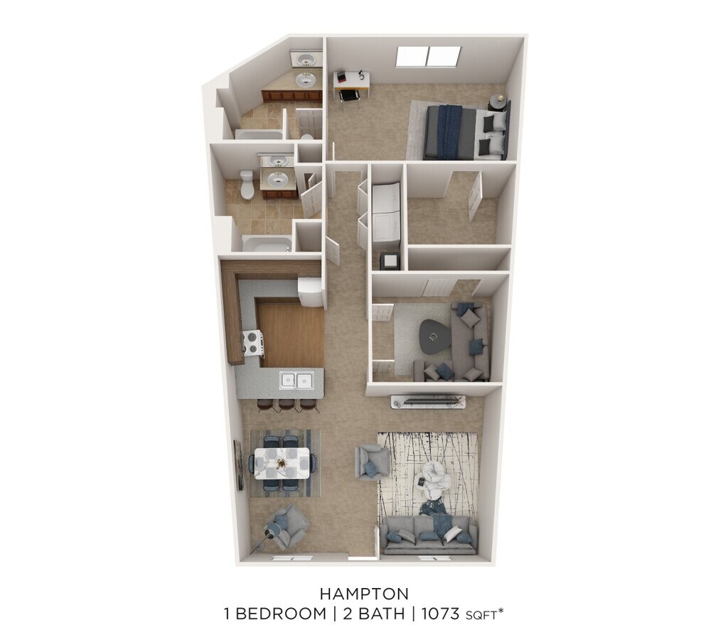 1 Bed, 2 Baths, 995-1073 sq ftAvailable Dec 16Largest 1 BedroomThis is the largest 1 Bedroom at this PropertyModel Gallery