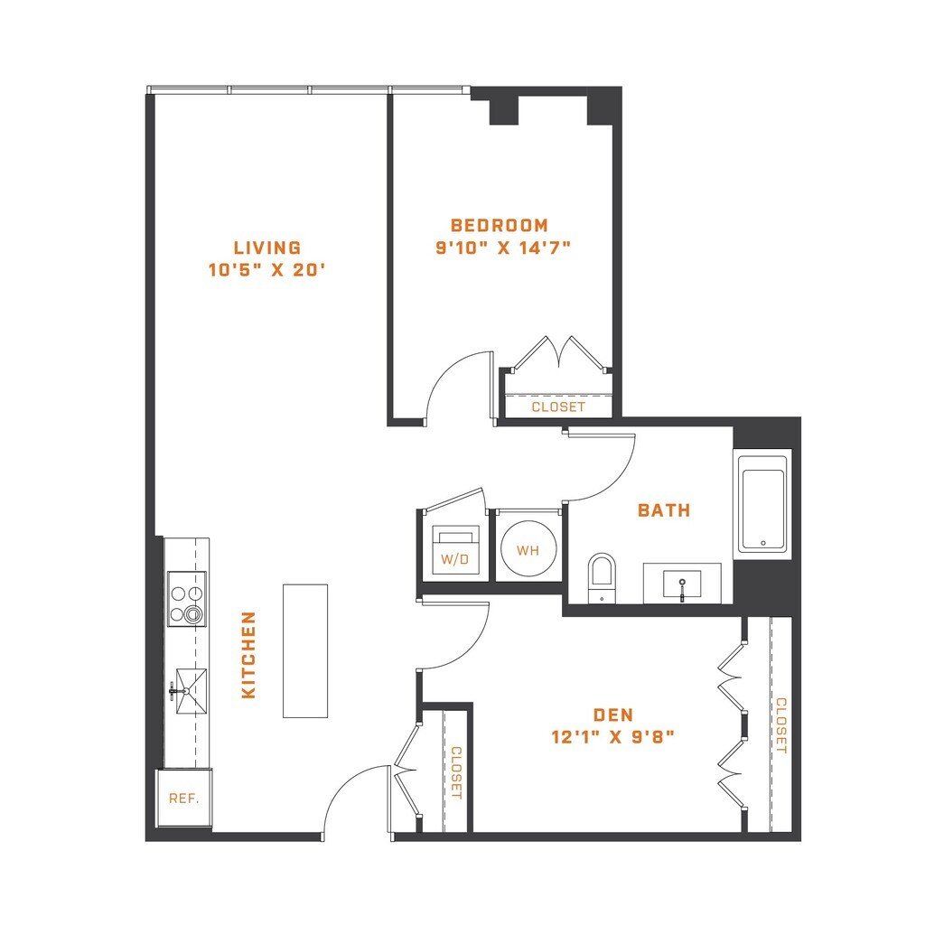 Apartment Model: 1 Bedroom Den - 1 Bath | AD51 Bedroom, 1 Bath, 858 sq ftAvailable Now![]()