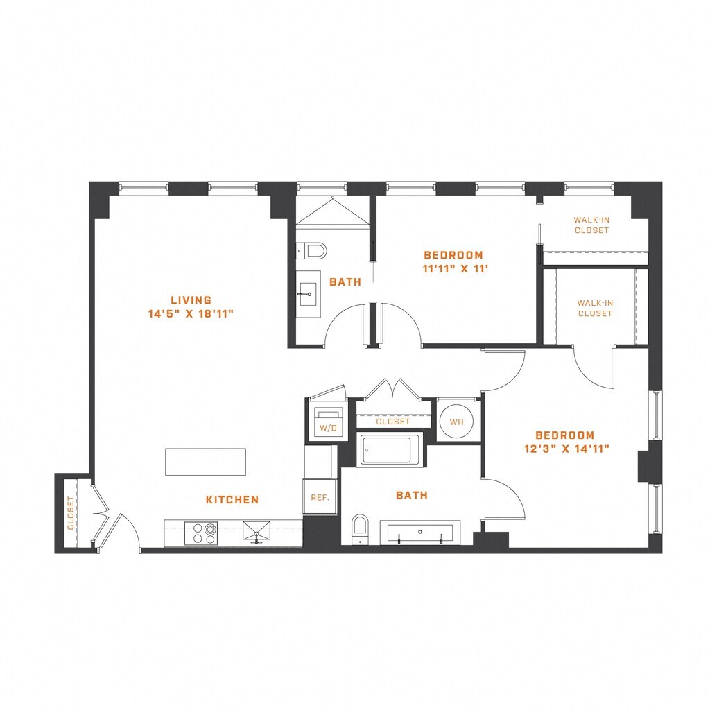 Apartment Model: 1 Bedroom - 1 Bath | A111 Bedroom, 1 Bath, 731 sq ftAvailable Now![]()