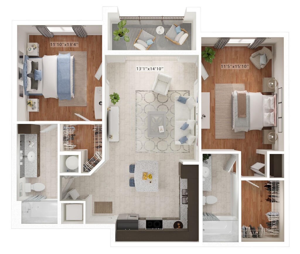 2 Beds, 2 Baths, 1097 sq ftAvailable NowModel Gallery