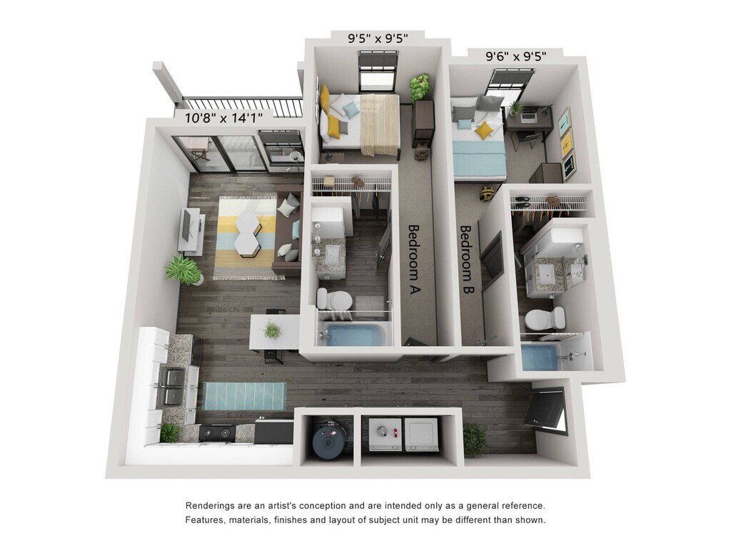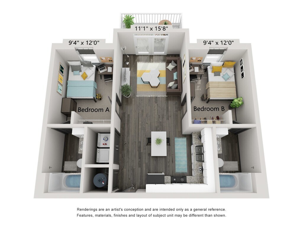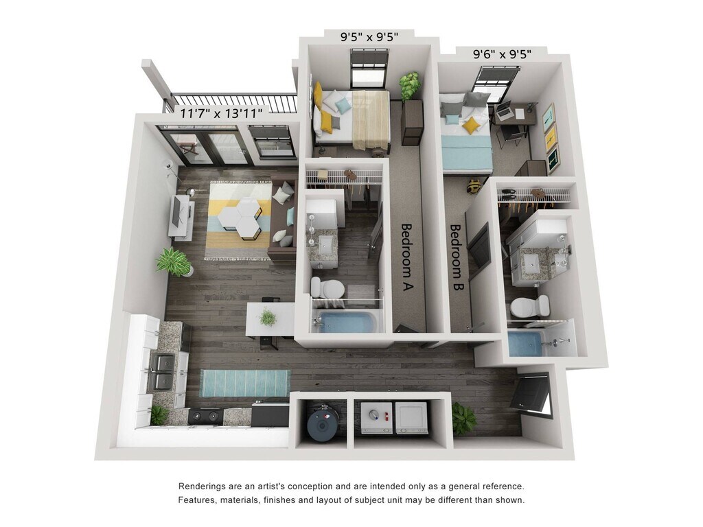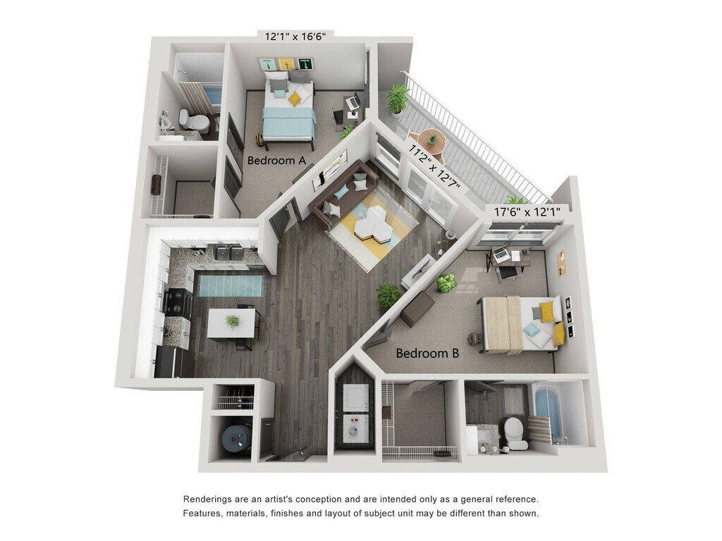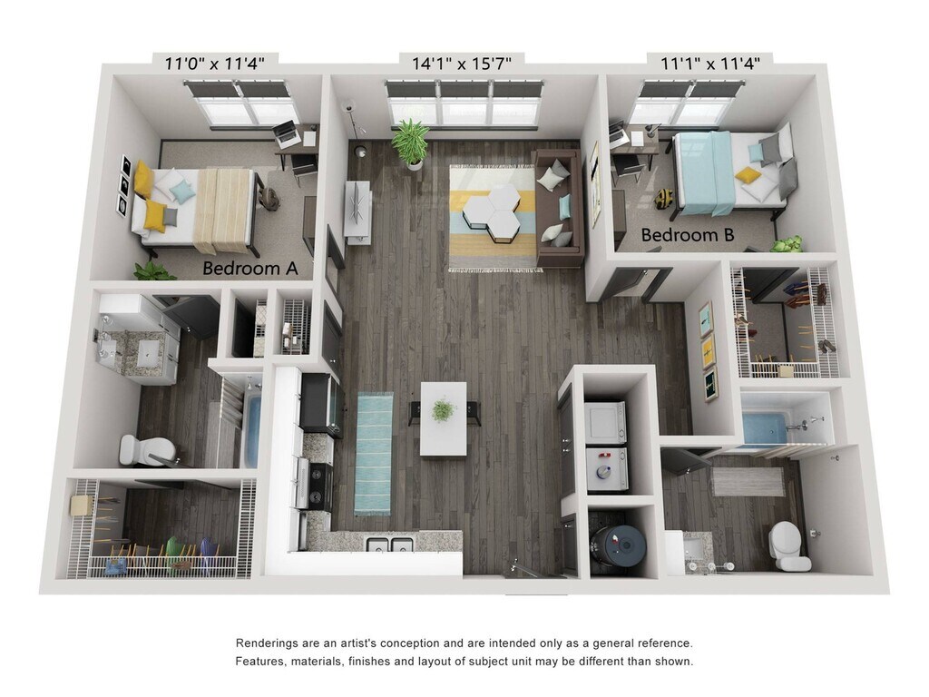 2 Beds, 2 Baths, 730 sq ftModel Gallery
