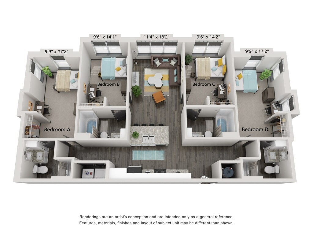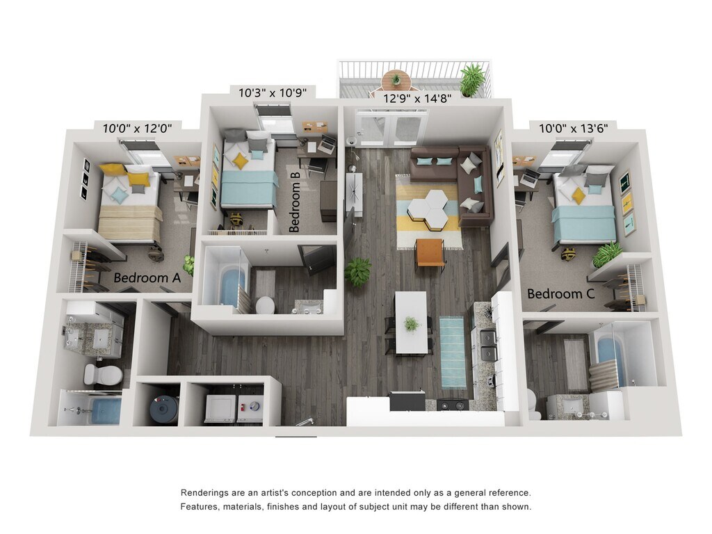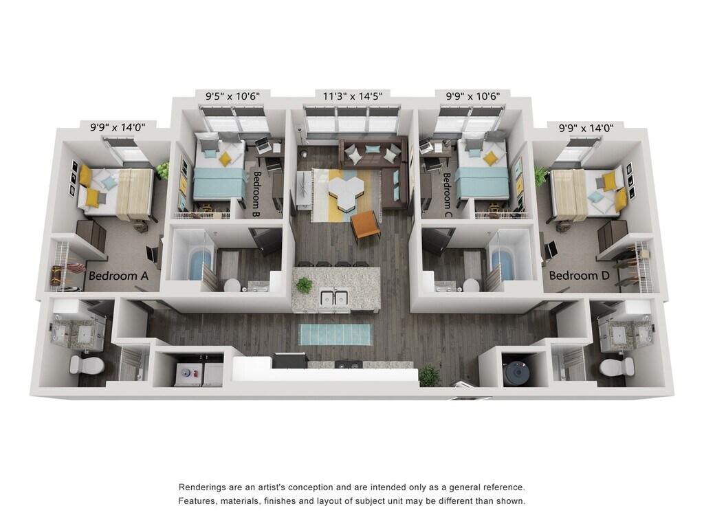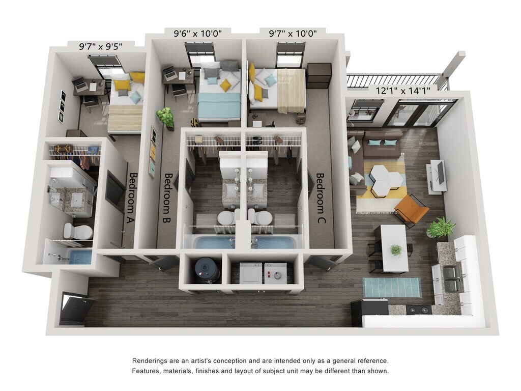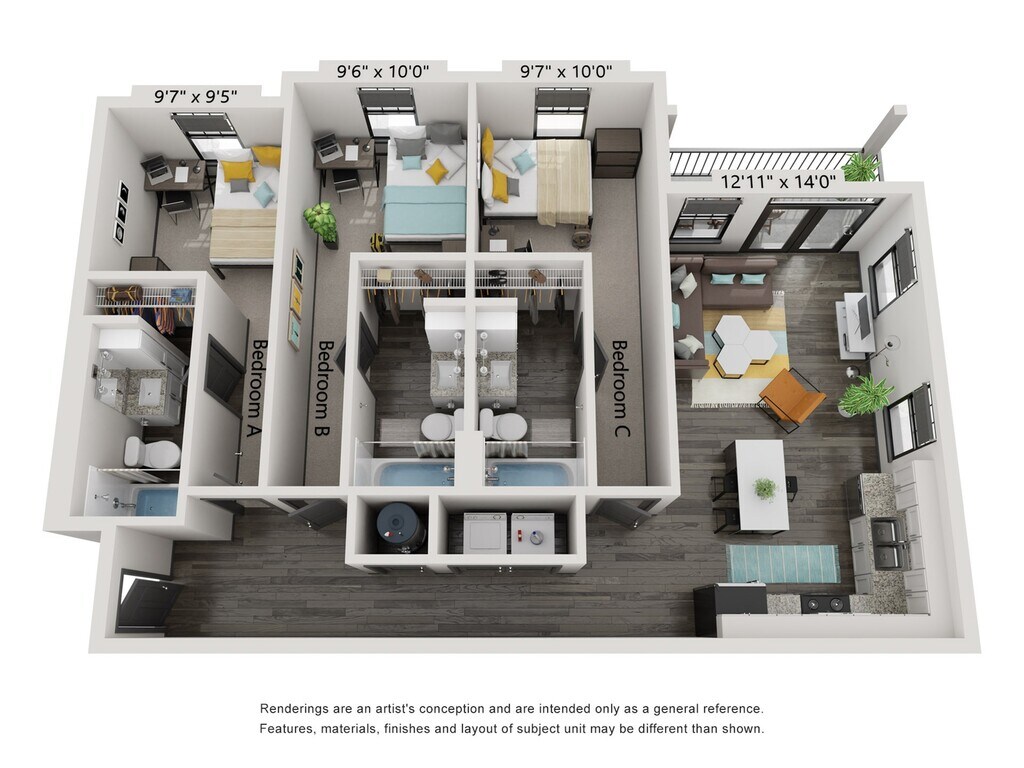 2 Beds, 2 Baths, 730 sq ftModel Gallery