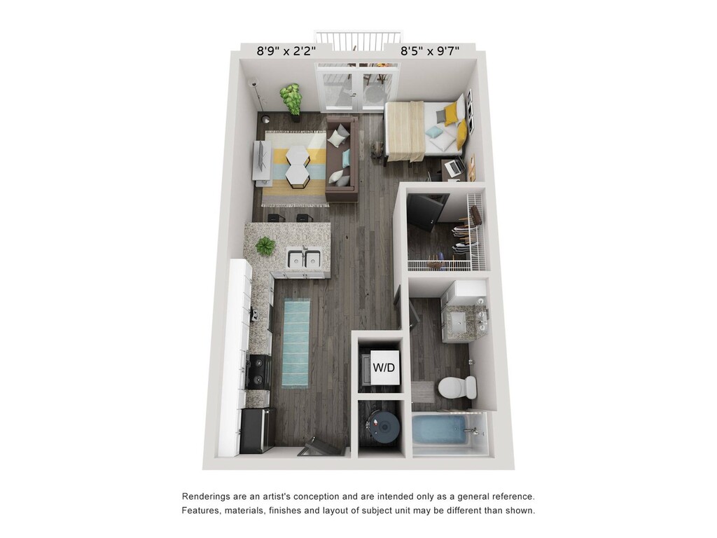 Studio, 1 Bath, 504 sq ftLargest StudioThis is the largest Studio at this PropertyModel Gallery