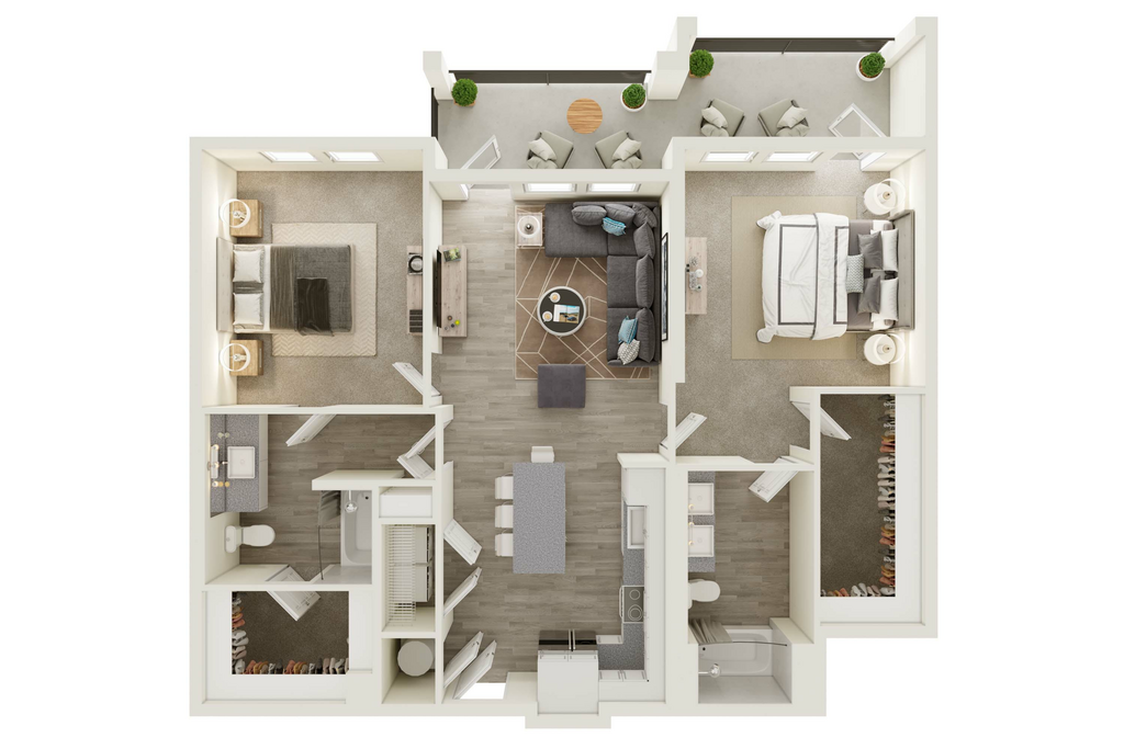 2 Beds, 2 Baths, 1107 sq ftAvailable NowModel Gallery