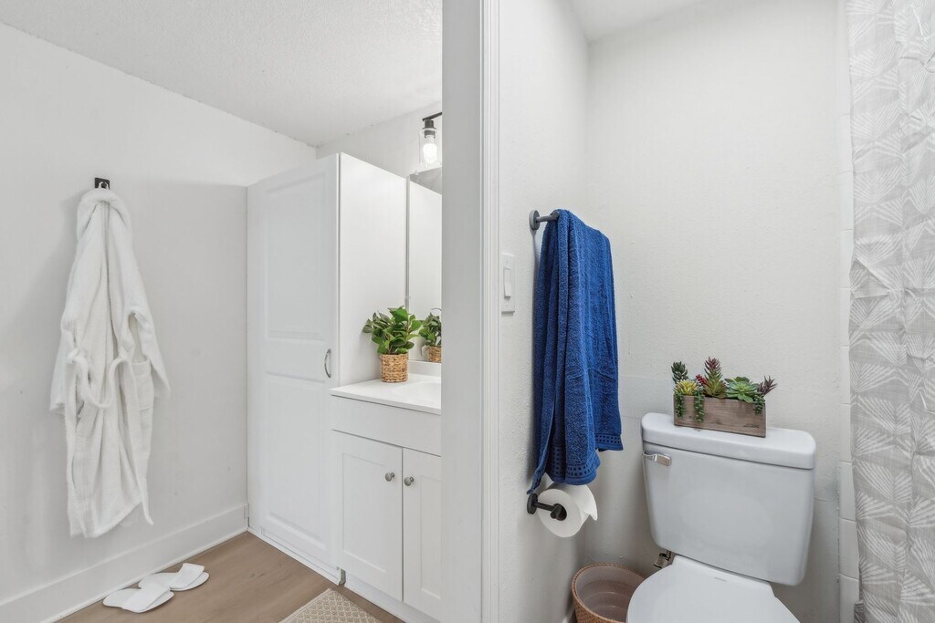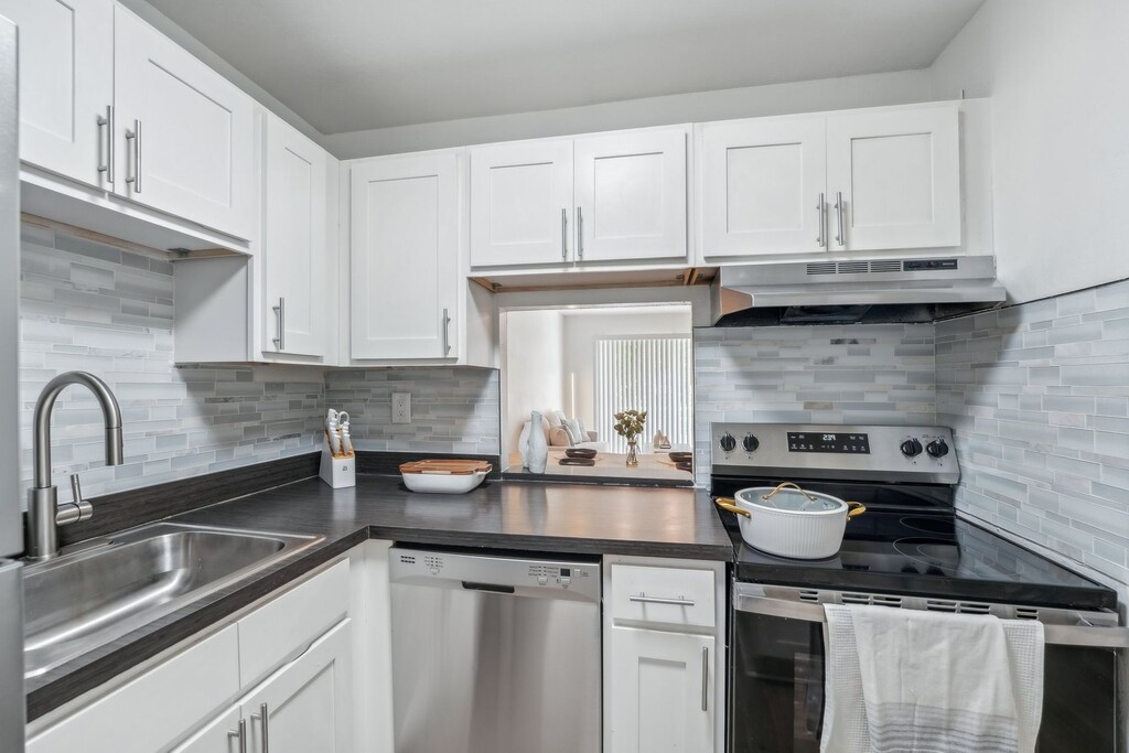 Relax and rejuvenate in our beautifully renovated apartments, where modern luxury meets cozy comfort. This home is a 1 Bedroom 1 Bathroom Modern Plus apartment that has beautiful stainless steel appliances, updated kitchen space with tiled backsplash, extra large walk in closets, and a personal patio. This home is located on the 1st floor with a view of our wooded courtyard area and partial view of the large swimming pool.