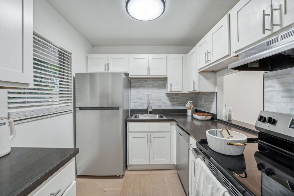 Relax and rejuvenate in our beautifully renovated apartments, where modern luxury meets cozy comfort. This home is a 1 Bedroom 1 Bathroom Simply Modern Plus that has beautiful stainless steel appliances, updated kitchen space with tiled backsplash, extra large walk in closet, and a personal patio.