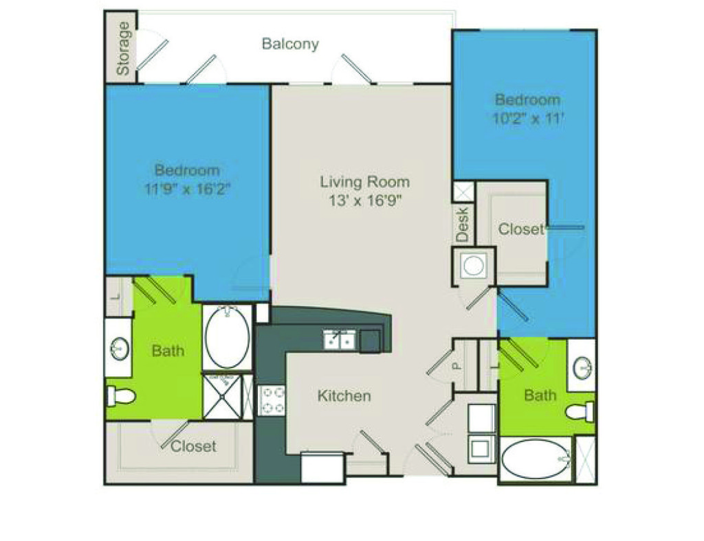 2 Beds, 2 Baths, 1151 sq ftAvailable NowLargest 2 BedroomThis is the largest 2 Bedroom at this PropertyModel Gallery