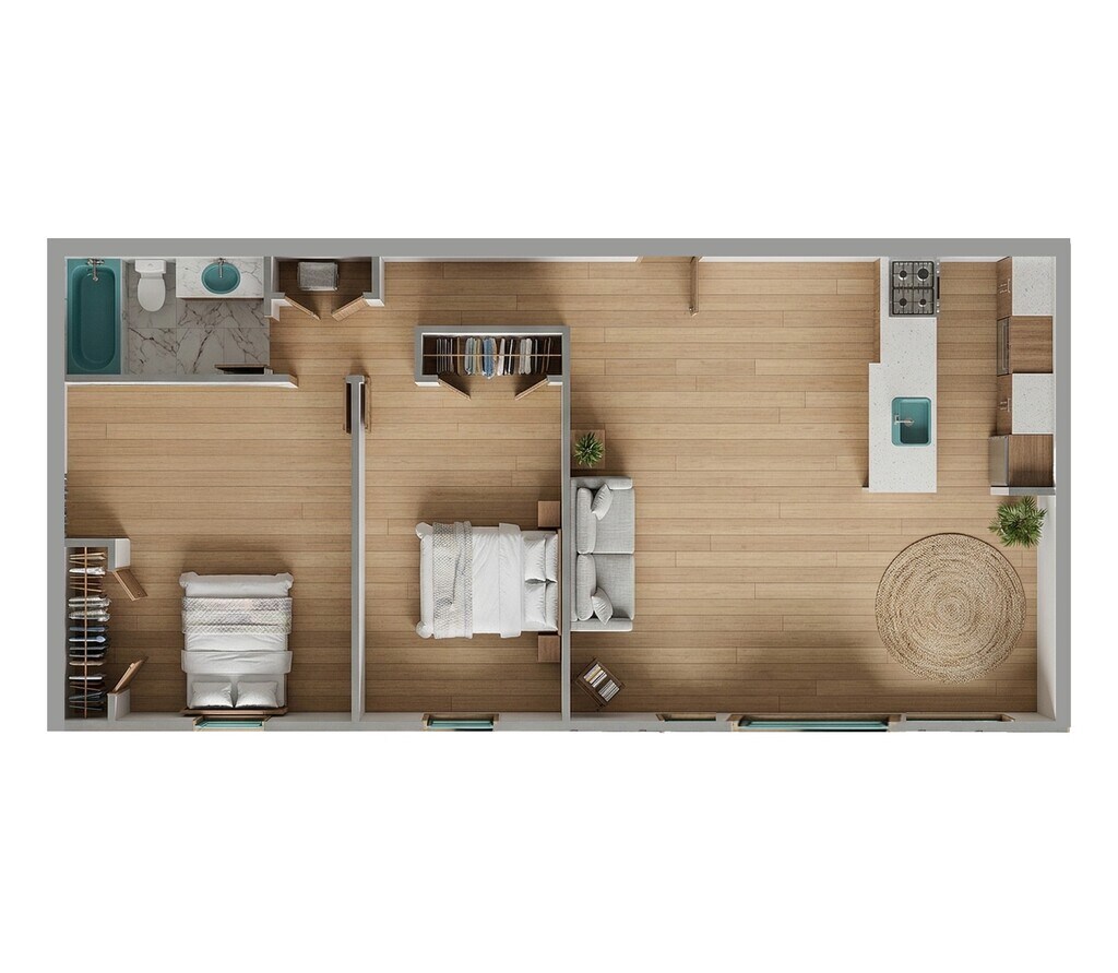 Jr. 1 Bedroom 1 Bathroom - Floorplan Apartment Unit: 202Apartment Model: Jr. 1 Bedroom 1 Bathroom1 Bedroom, 1 Bath, 350 sq ftAvailable May 7, 20262 Bedrooms