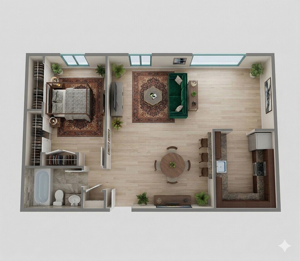 1 Bed, 1 Bath, 700 sq ftAvailable NowModel Gallery