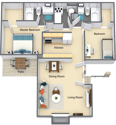 2 Beds, 2 Baths, 933 sq ftModel Gallery