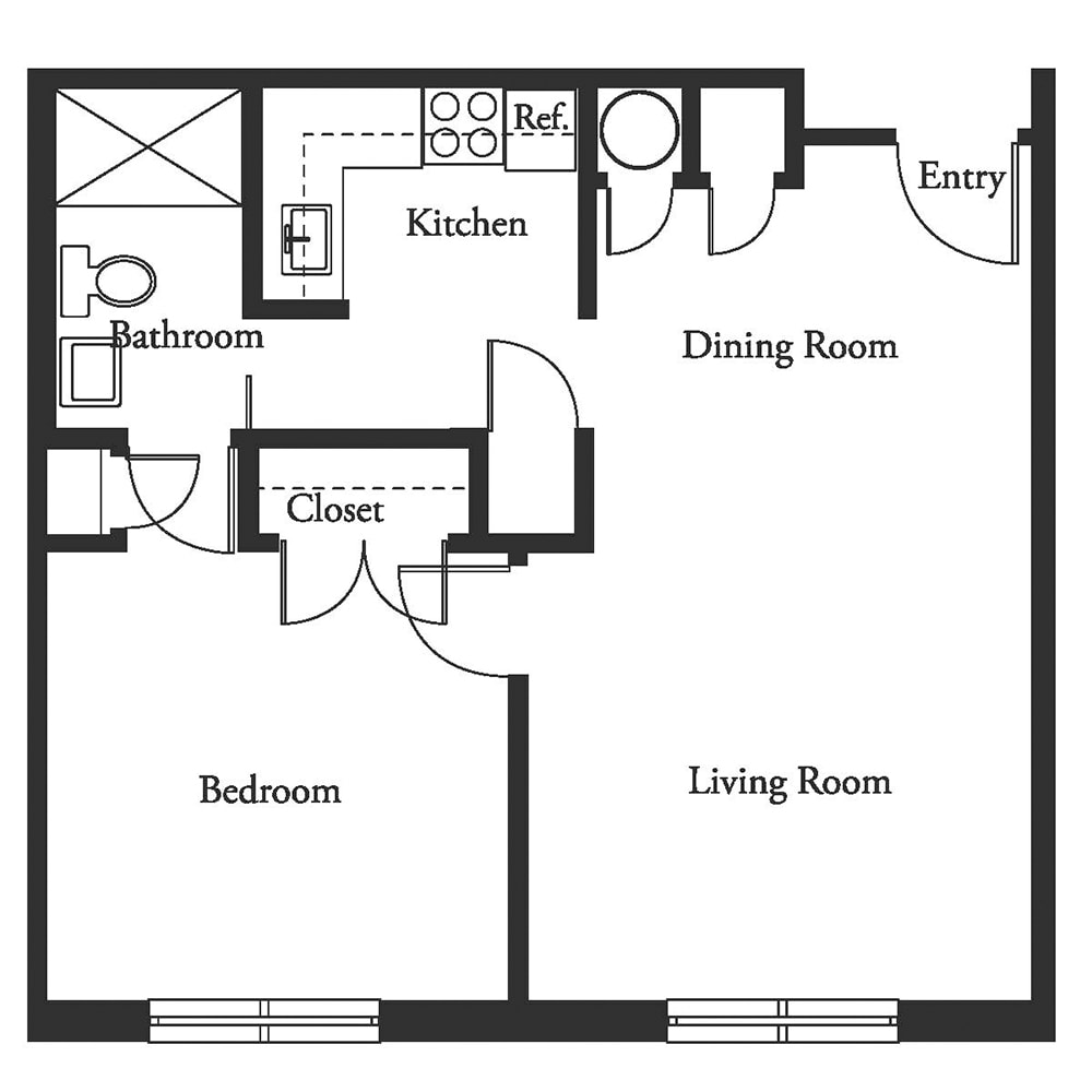 Apartment Model: WillowStudio, 1 Bath, 540 sq ftUnavailableWillow - Floorplan 1 1 Bedroom