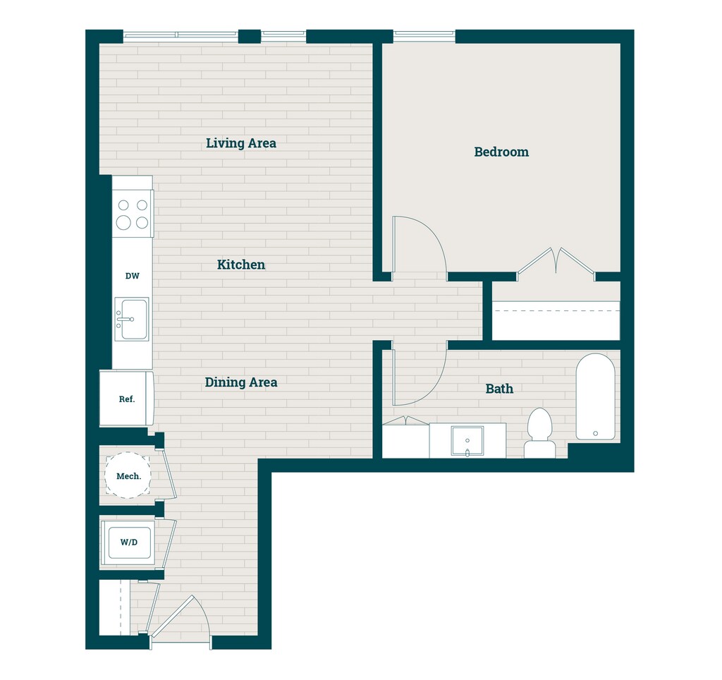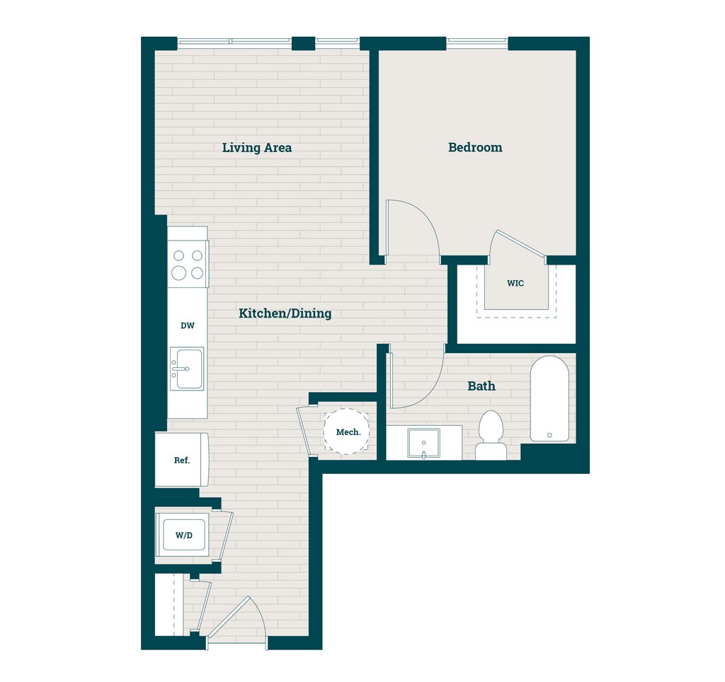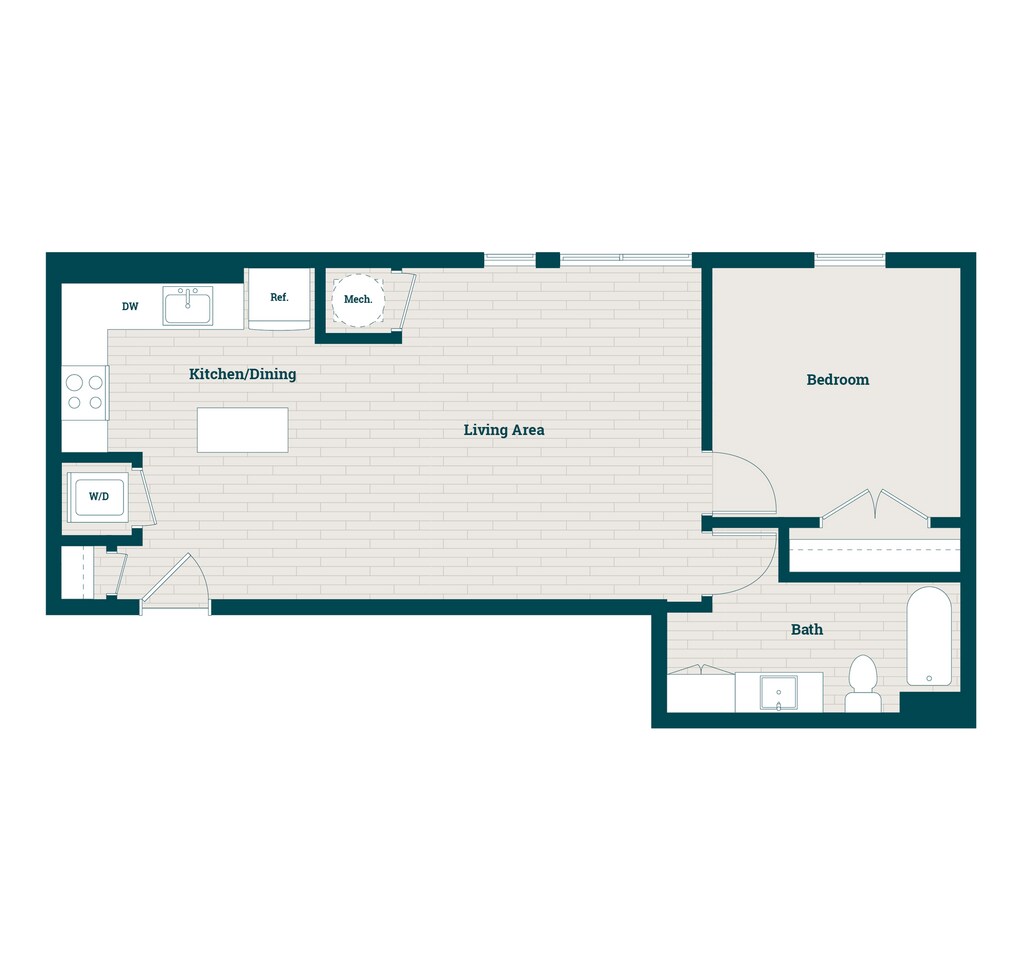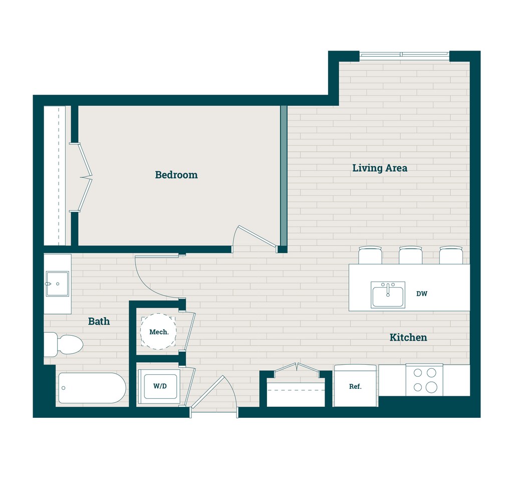 Studio, 1 Bath, 570 sq ftAvailable NowLargest StudioThis is the largest Studio at this PropertyModel Gallery