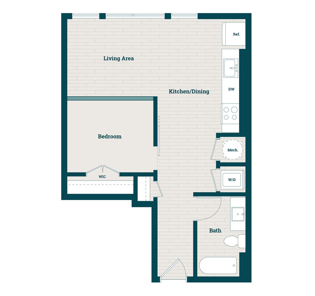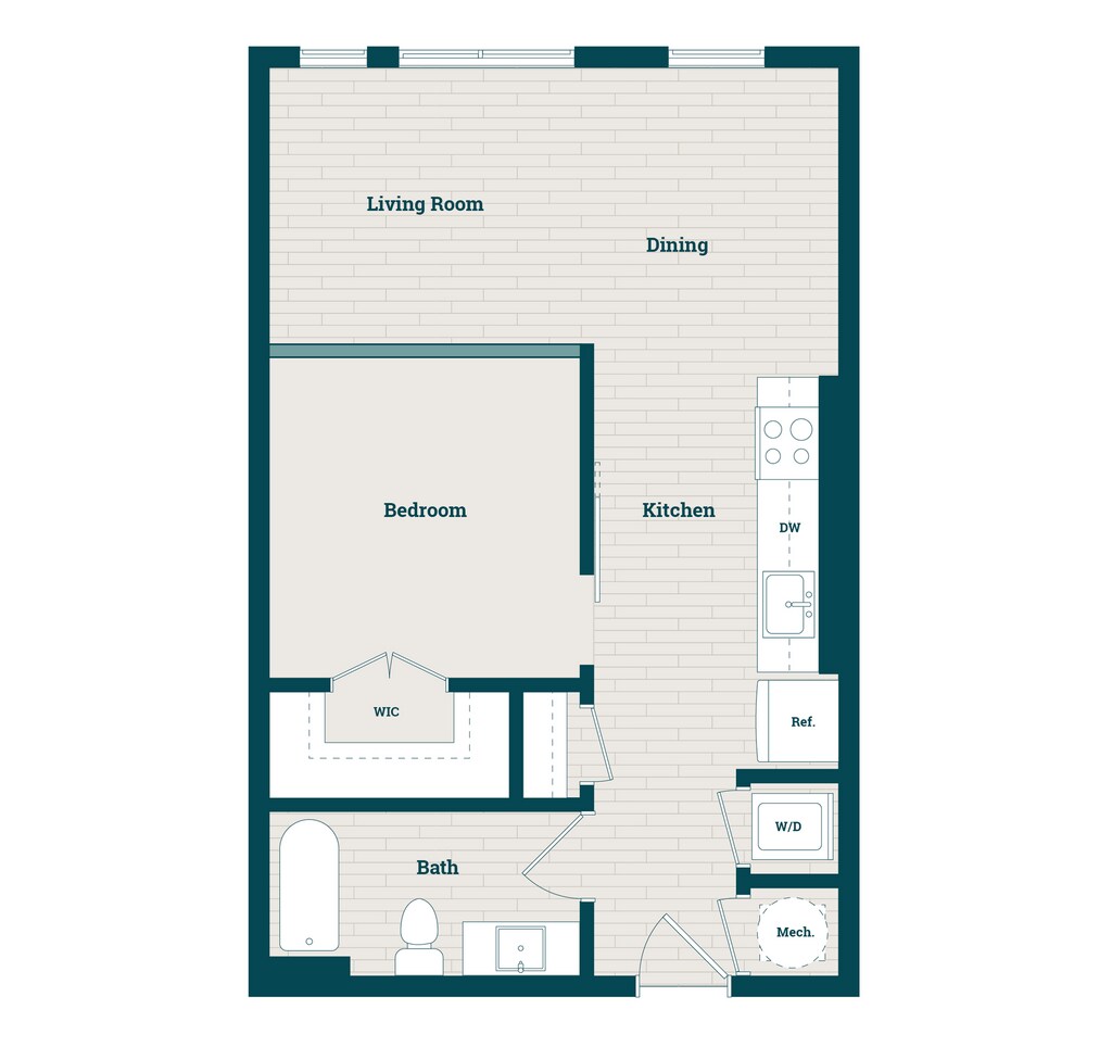 Studio, 1 Bath, 544 sq ftAvailable NowModel Gallery