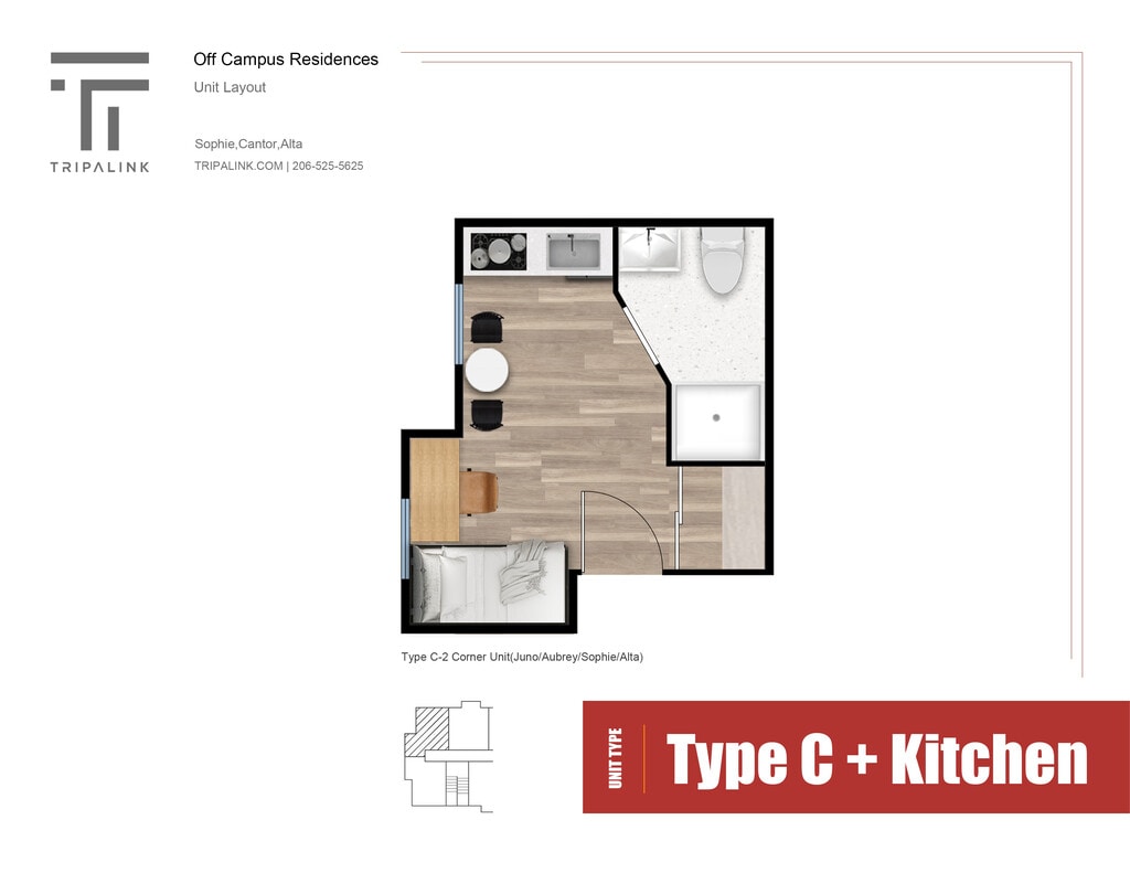 Apartment Model: Standard Corner StudioFrom $990Studio, 1 Bath, 165-180 sq ftAvailable Now![]()