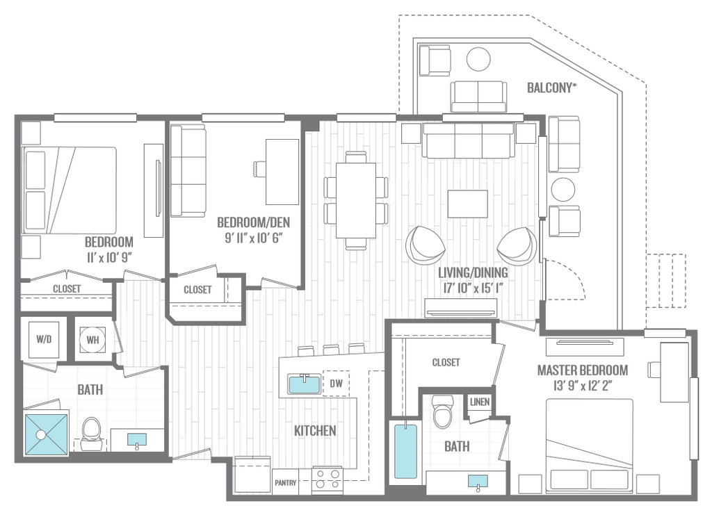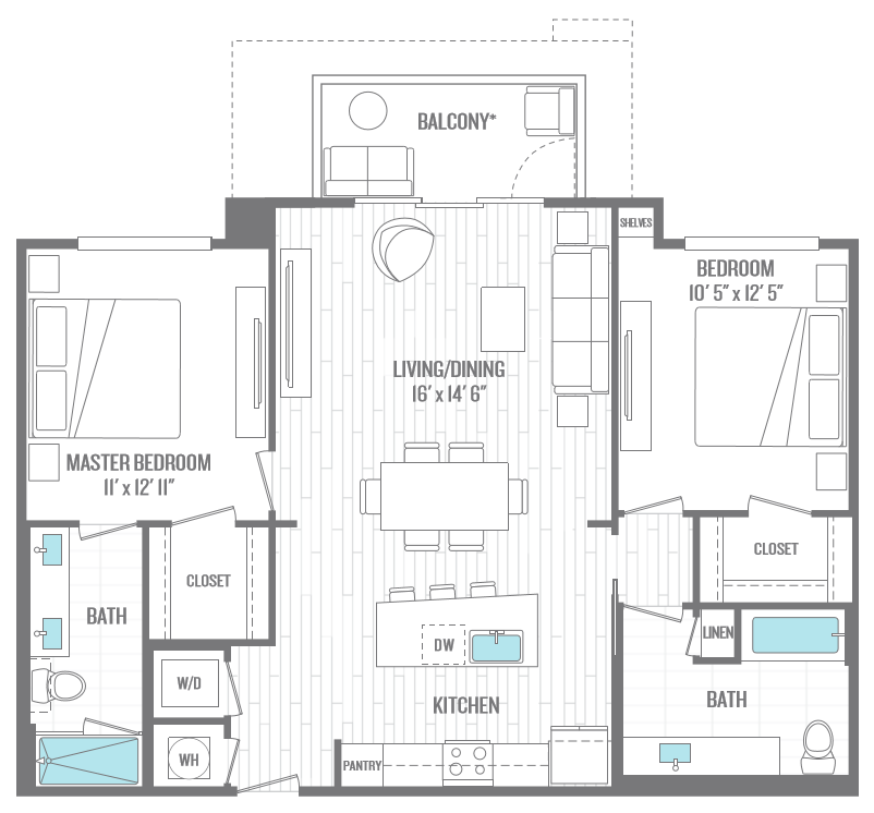 Apartment Model: A1From $2,1831 Bedroom, 1 Bath, 778 sq ftAvailable Now![]()