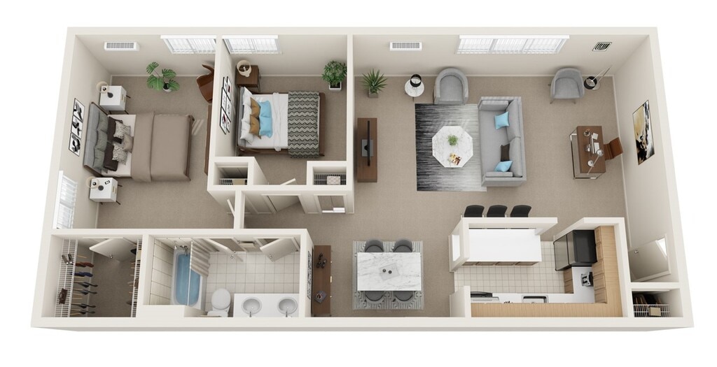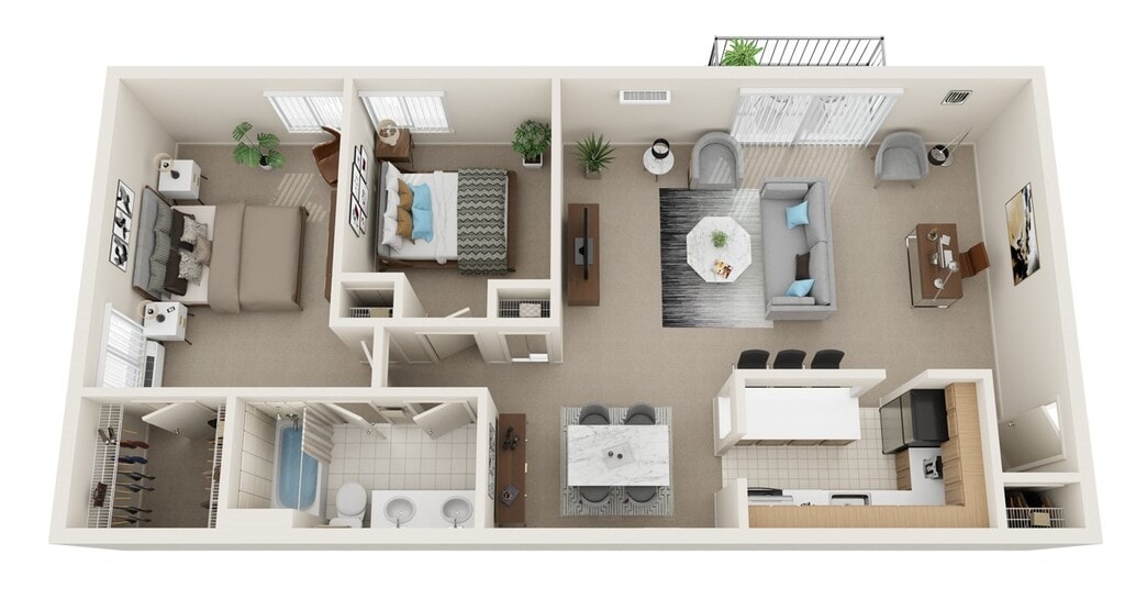 2 Beds, 1 Bath, 900 sq ftModel Gallery