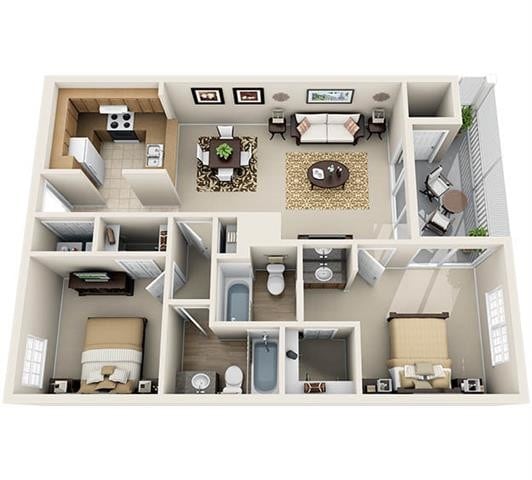 2 Beds, 2 Baths, 1157 sq ftAvailable NowModel Gallery