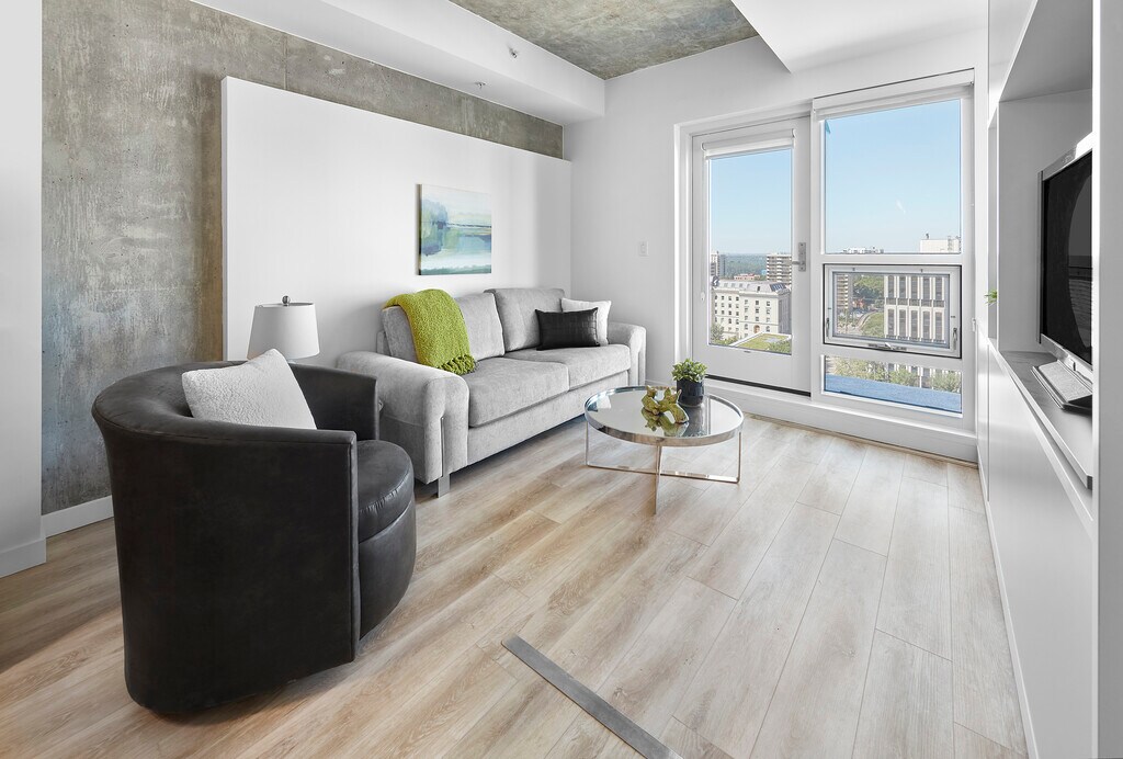 Augustana Augustana offers premium living in the heart of downtown Edmonton, on the tree-lined Heritage Trail Promenade, just steps away from the Alberta Legislature Grounds. Arrive home to a stunning entrance lobby and enjoy and exceptional mix of onsite amenities, future ground floor retail & services, and some of the best views of the Downtown Edmonton cityscape and the nearby River Valley.With many of Edmonton’s best restaurants, cafes, entertainment venues, and nightlife nearby, Augustana is ideal for anyone looking for well-connected premium living in the heart of the city. Shopping, services, and grocery stores are within walking distance, while adjacent access to Corona and Government Centre LRT Stations allow for quick trips to the University of Alberta, MacEwan University, NAIT, and beyond. Living at Augustana encompasses:Studio, 1, 2 and 3 bedroom suitesStainless steel appliancesQuartz countertopsWide plank vinyl flooringIn-suite laundryLight-filtering roller shadesIndividual thermostatsPrivate balconiesCity viewsRiver Valley viewsSleek exposed concrete accentsFitness centreScenic 30th Floor Resident Lounge & Rooftop PatioPrivate dining and meeting roomsBicycle storageParcel delivery lockersPenthouse suites*Central air conditioning*Pet friendly*Underground parking*Video surveillance*Wheelchair Access* *Contact our Leasing Consultant for details. Pricing, Incentives & Availability are subject to change or end without notice. Terms & Conditions apply. Valid on new move-ins. E.&O.E.Anti-fraud alert: Hazelview Properties will never request Interact E-Transfer payments for deposits or rent. Incentives: • 2 Months Free on Select Suites!* • $100 Monthly Off-Site Parking Credits!*