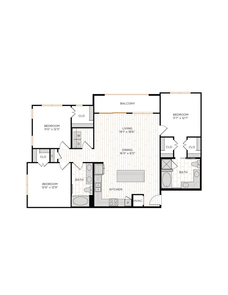 Apartment Model: A3From $1,1231 Bedroom, 1 Bath, 723 sq ftAvailable Now![]()