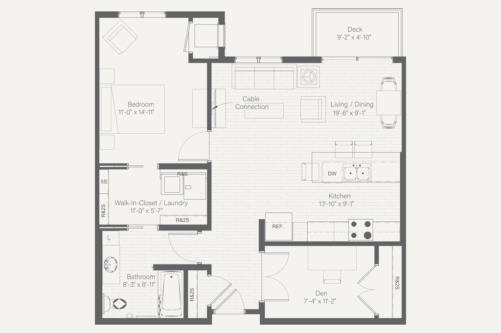 1 Bed, 1 Bath, 709 sq ftPlus FeesAvailable NowModel Gallery