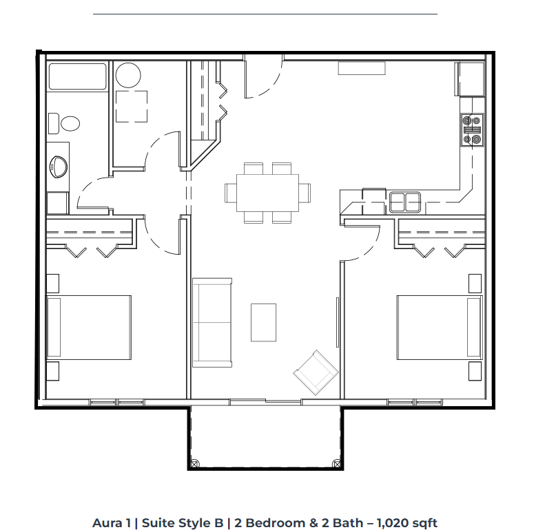 Suite Style B|Aura1 - Floorplan 1 Apartment Unit: 304Apartment Model: Suite Style B|Aura12 Bedroom, 1 Bath, 1020 sq ftAvailable NowApartment Unit: 305Apartment Model: Suite Style B|Aura12 Bedroom, 1 Bath, 1020 sq ftAvailable September 30, 2026Suite Style A|Aura1