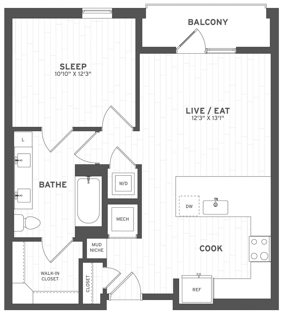 1 Bed, 1 Bath, 709 sq ftAvailable NowModel Gallery