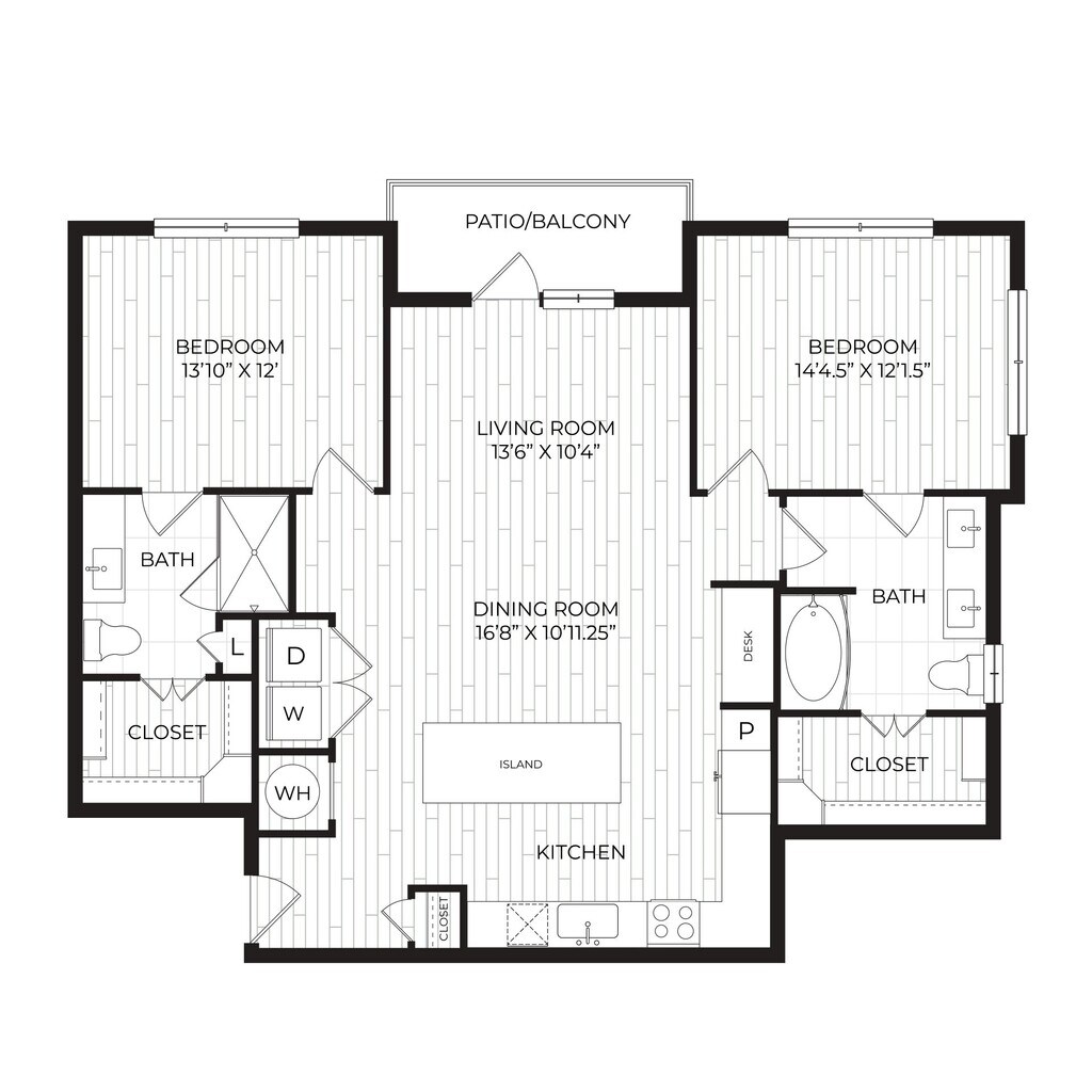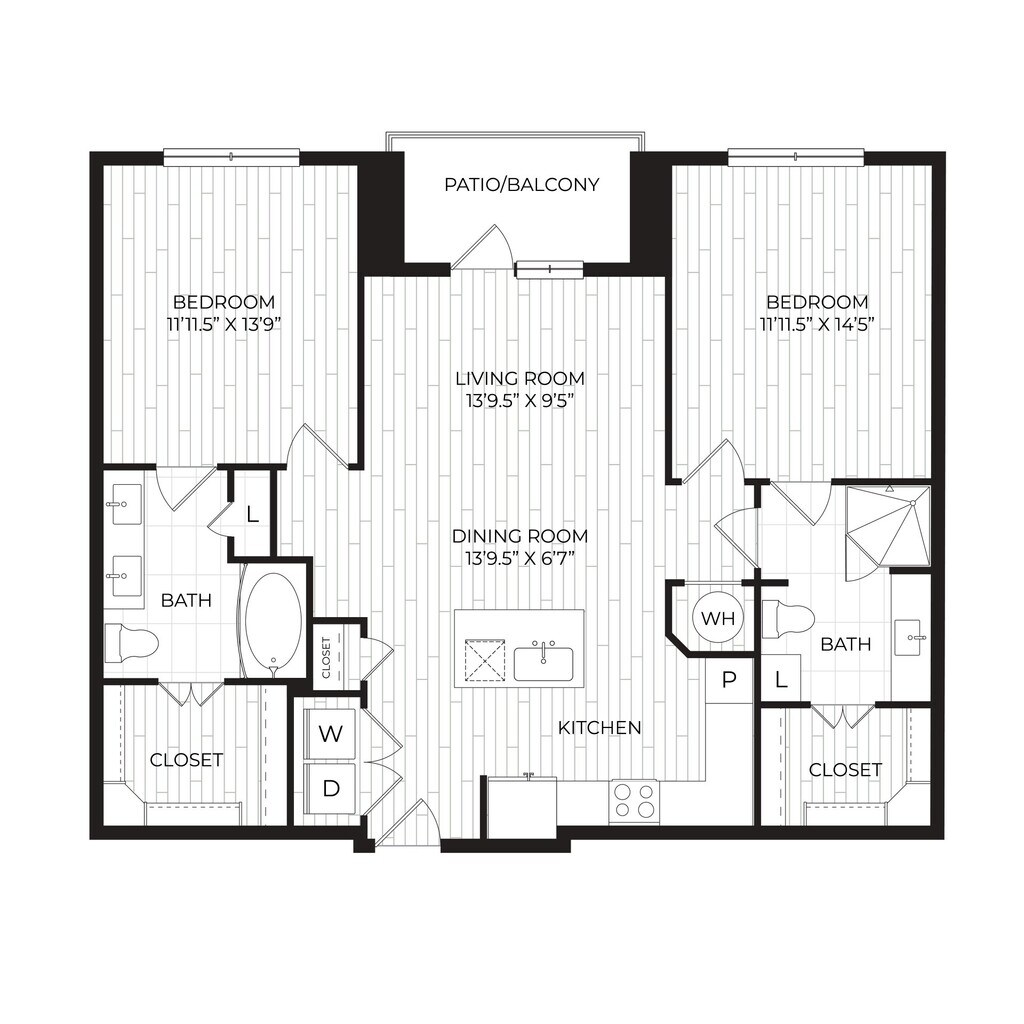 Apartment Model: A2.0From $1,3851 Bedroom, 1 Bath, 658 sq ftAvailable Now![]()