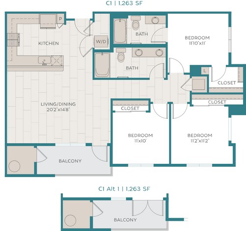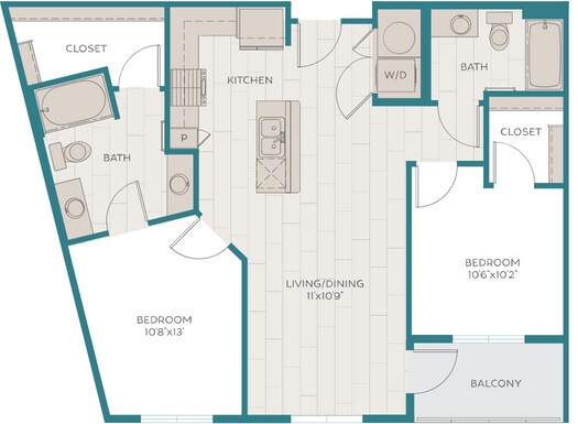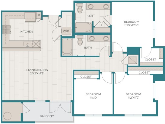 1 Bed, 1.5 Baths, 1196 sq ftLargest 1 BedroomThis is the largest 1 Bedroom at this PropertyModel Gallery
