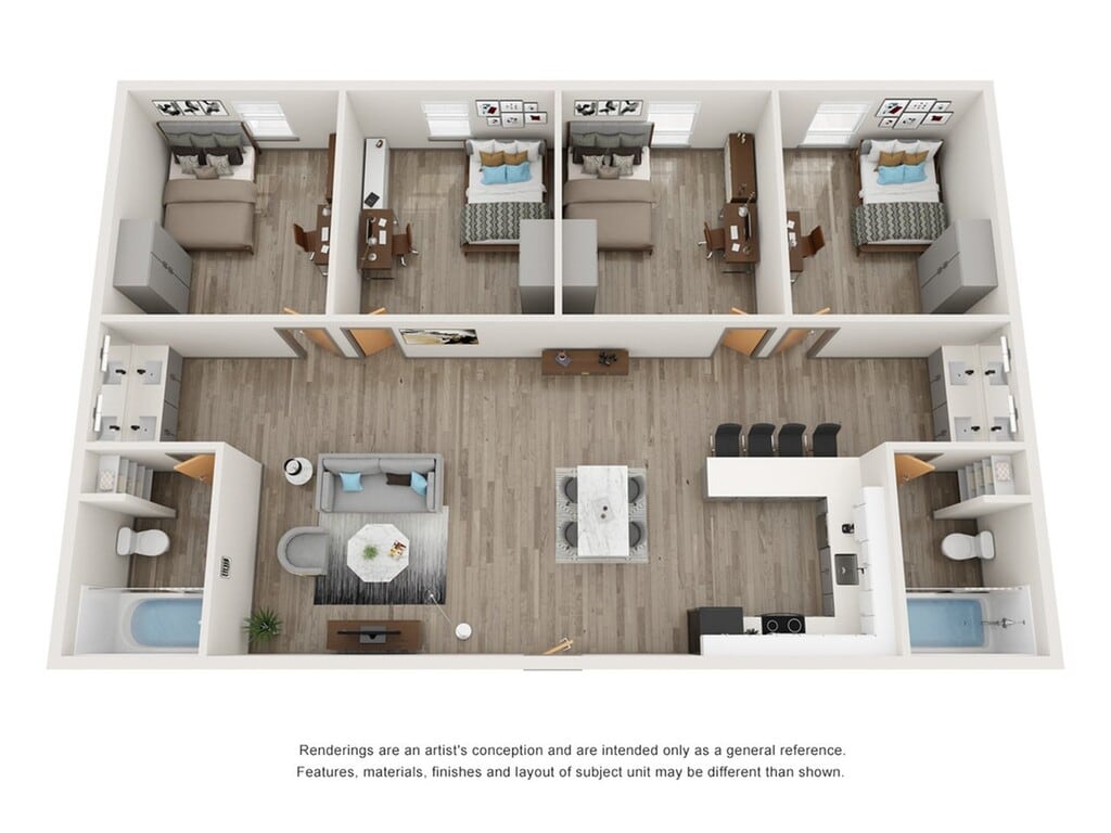 4BR/2BA - Floorplan 1 Apartment Unit: PrivateApartment Model: 4BR/2BA$8304 Bedroom, 2 Bath, 1000 sq ftAvailable Now4BR/2BA - Corner
