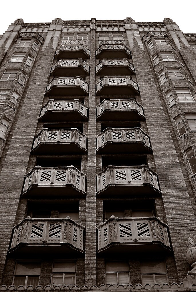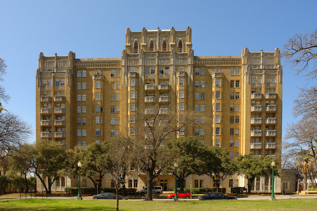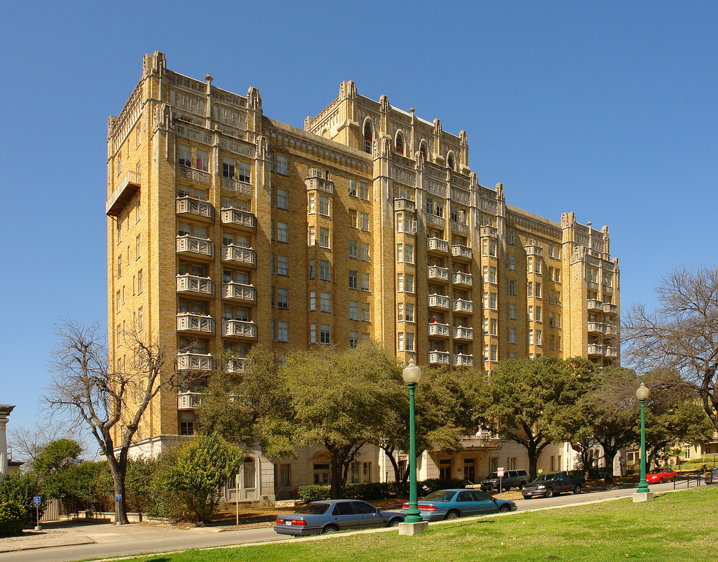 The Aurora is an eleven story, vintage apartment building overlooking Crockett Park just north of downtown San Antonio. The architecture is a classic example of the 1930's era when attention to detail and exquisite craftsmanship were the norm. The lobby itself with the Art Deco elevator doors and the hand-carved, wooden fireplace mantle still welcome people home. There is also a spectacular ballroom with crystal chandeliers that is now used as a sunroom for those residents wanting to read or play a game of pool. For those fortunate few that call The Aurora home, community is an important part of the Active Adult lifestyle. We are small pet friendly and have plenty of parking. Call to schedule your tour of this historic beauty.