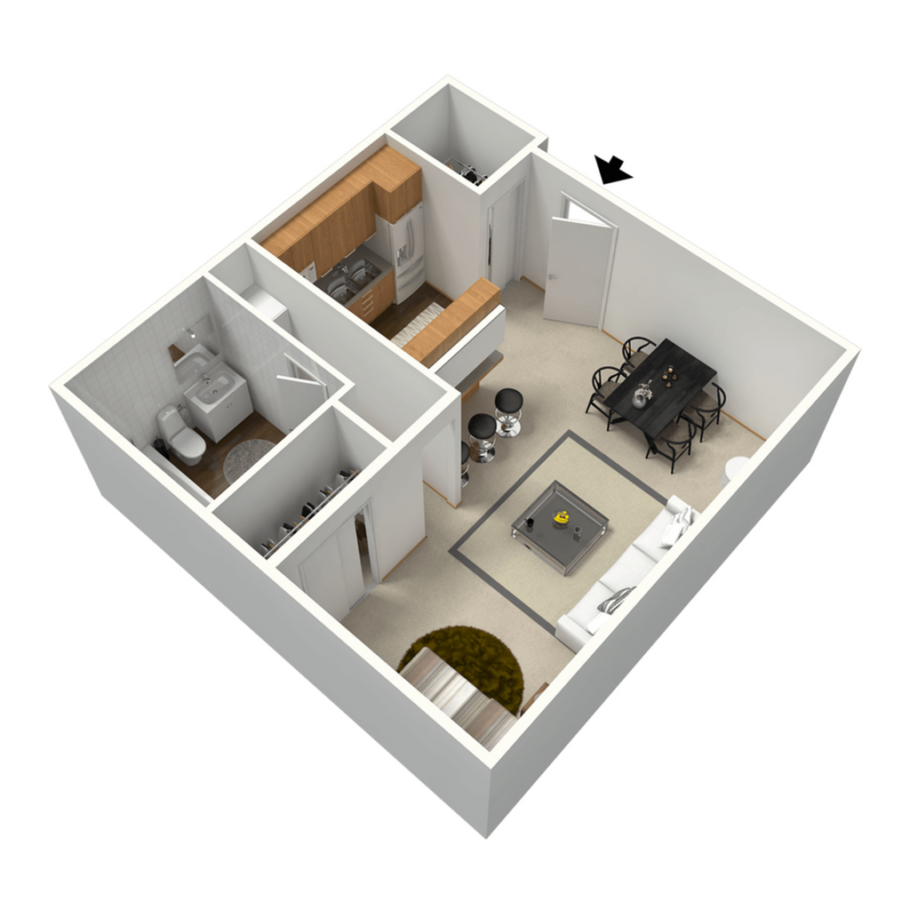 Studio Renovated - Floorplan Apartment Unit: 665-105Apartment Model: Studio Renovated$1,228Studio, 1 Bath, 450 sq ftAvailable April 30, 20261 Bedroom