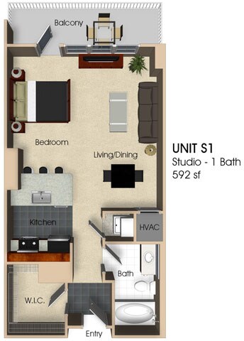 Apartment Model: (S1) Studio 1 BathroomFrom $1,787Studio, 1 Bath, 592 sq ftAvailable November 29, 2025![]()