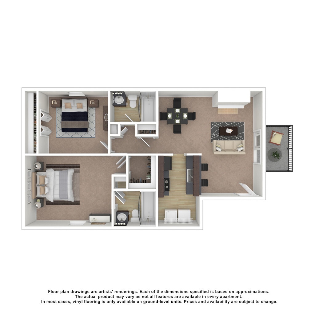 Apartment Model: The Bradley 2 x 2From $1,3532 Bedroom, 2 Bath, 975 sq ftAvailable Now![]()