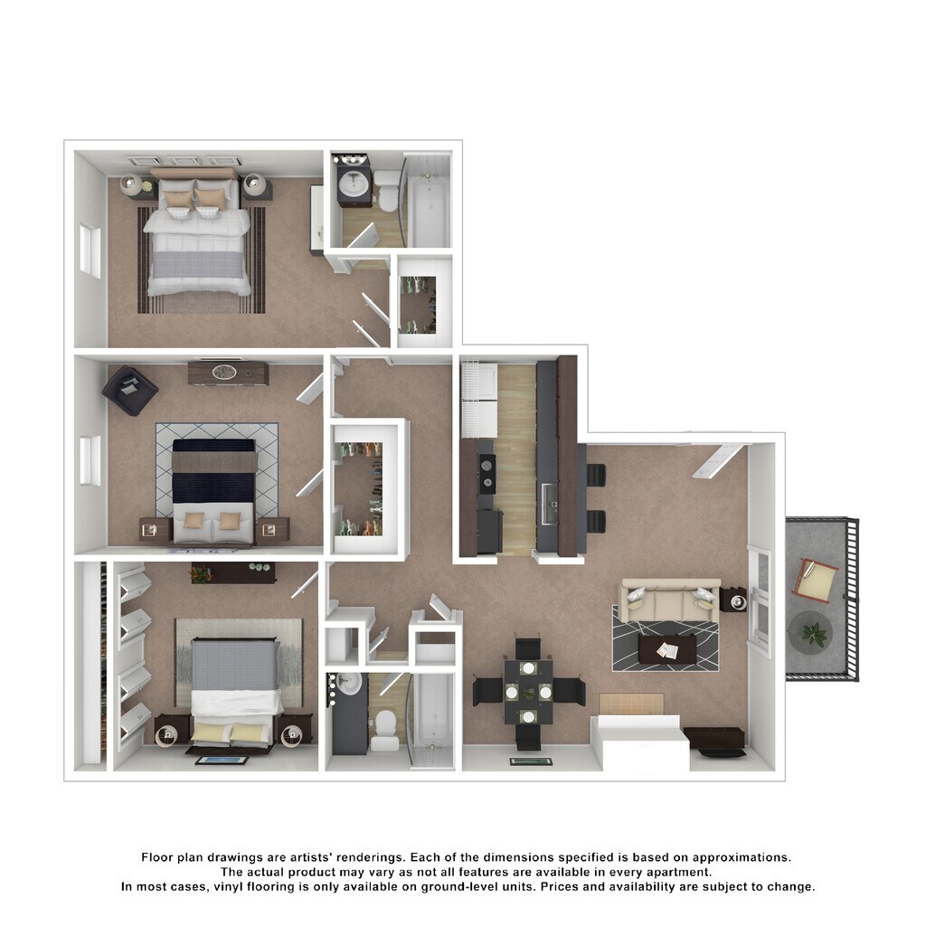 Apartment Model: The Brookwood 3 x 2$1,5543 Bedroom, 2 Bath, 1220 sq ftUnavailable![]()