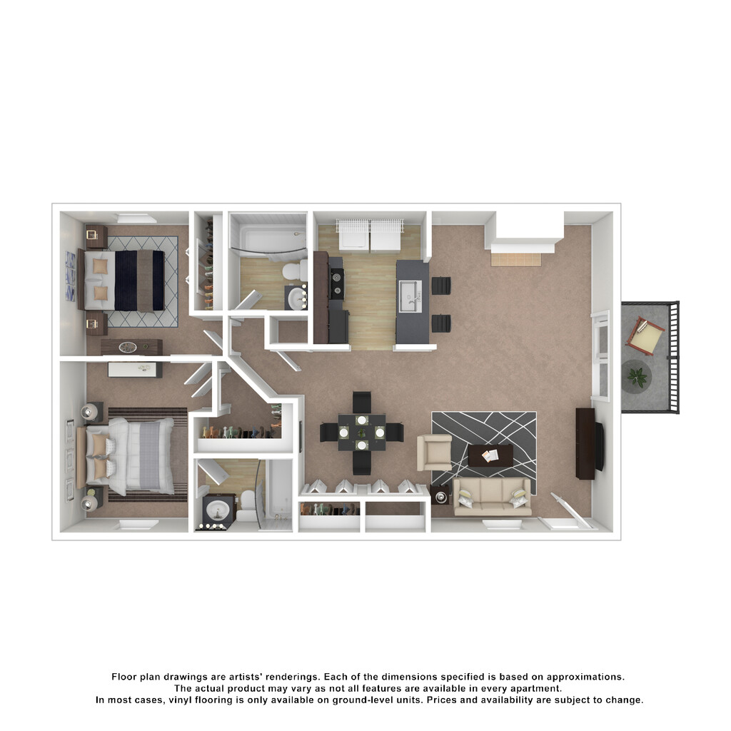 2 Beds, 2 Baths, 1020 sq ftAvailable NowModel Gallery