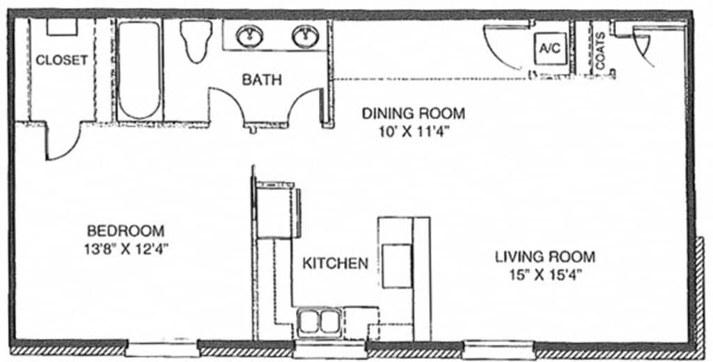1 Bed 1 Bath - A2 - Floorplan 1 2 Bedrooms