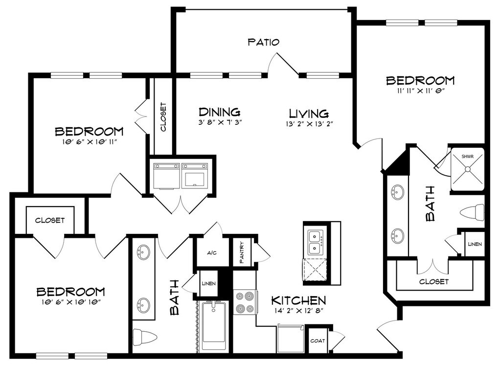 Apartment Model: A1HC$1,3101 Bedroom, 1 Bath, 746 sq ftAvailable Now![]()